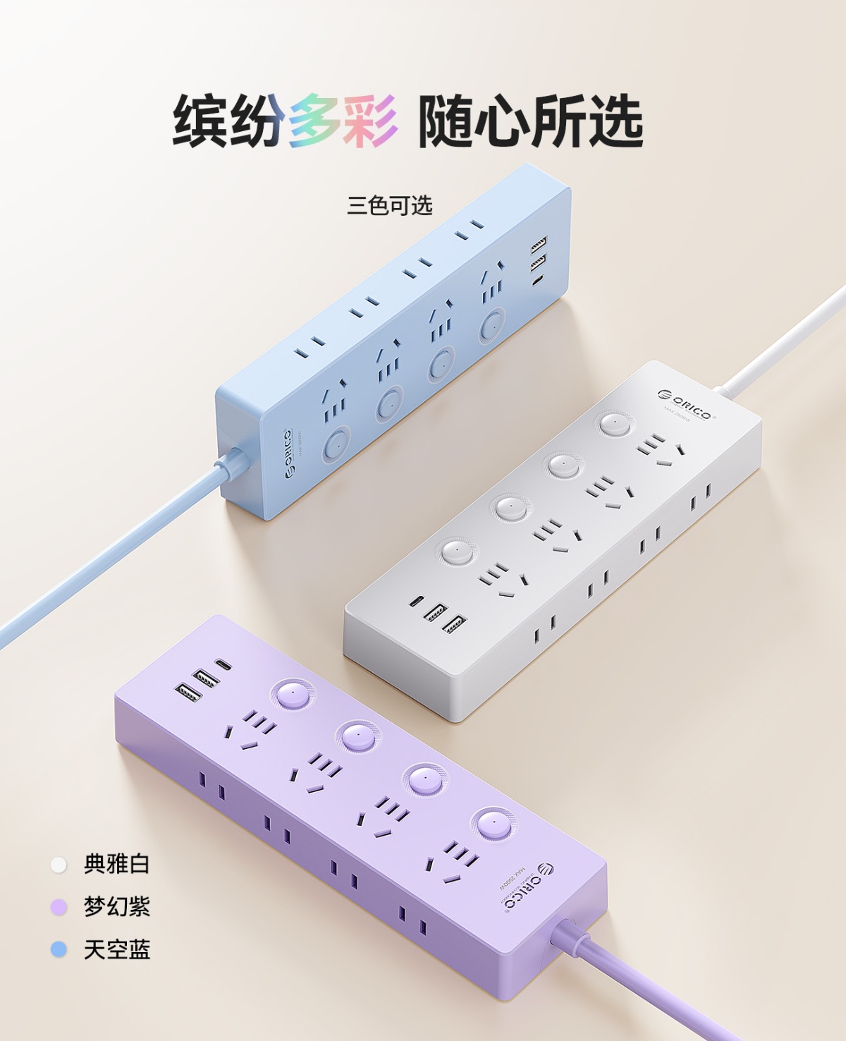 白色、藍色、紫色