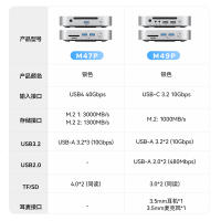 M.2 SSD*2 (2盤同時運行, 盤符1速度3000M/s 盤符2速度1300M/s) USB-A 3.2*3(10Gbps) TF/SD4.0*2(同讀)