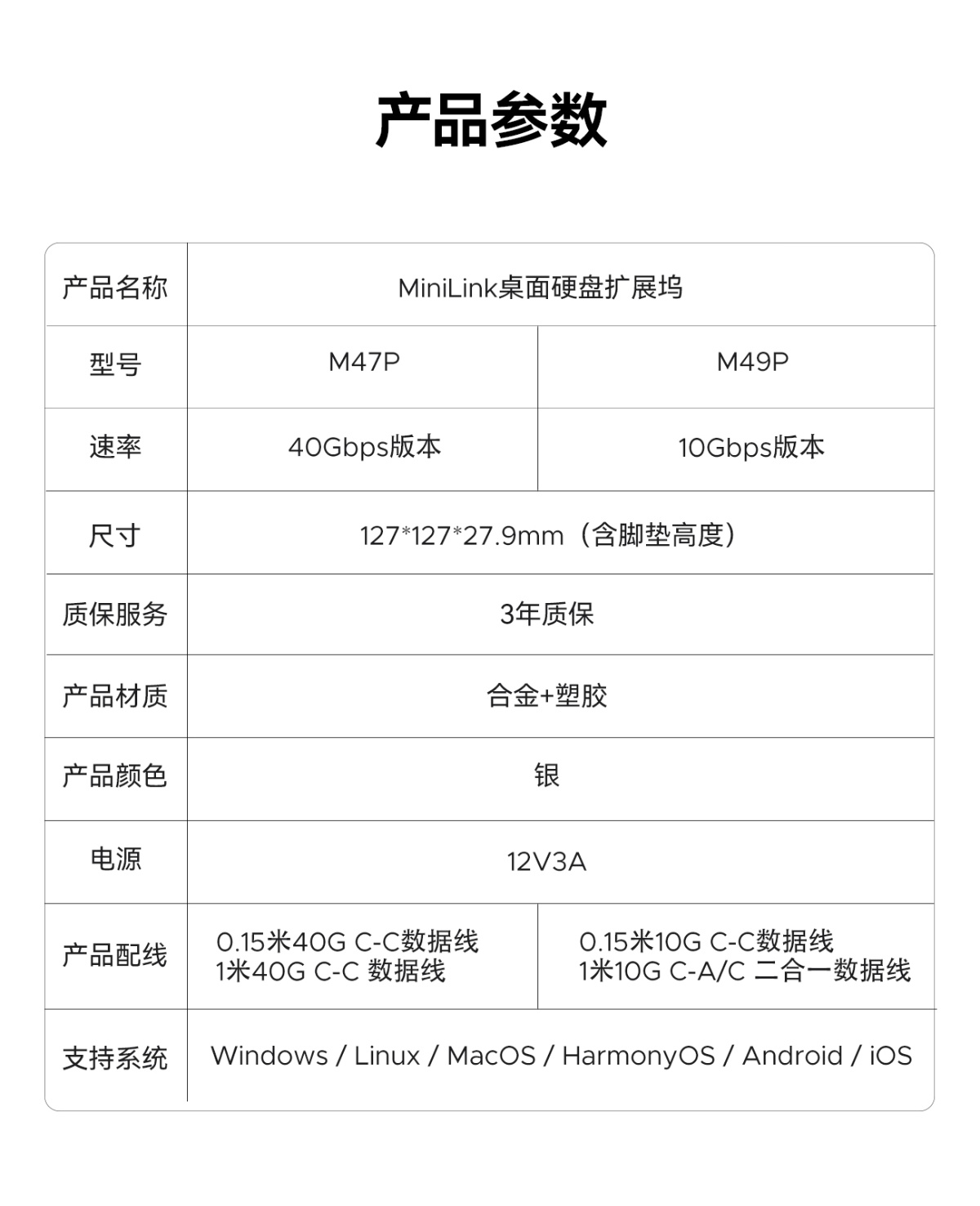 40Gbps 7合1 MiniLink蘋果風桌面硬盤擴展塢