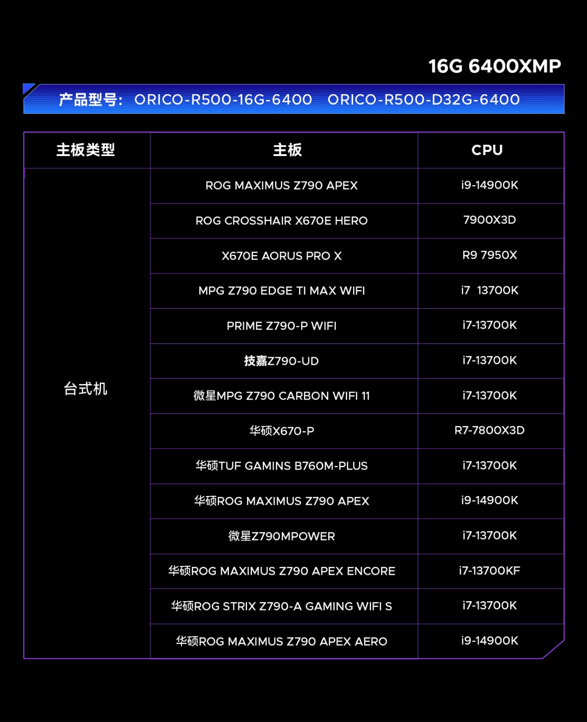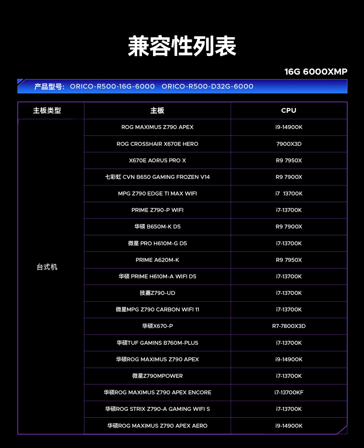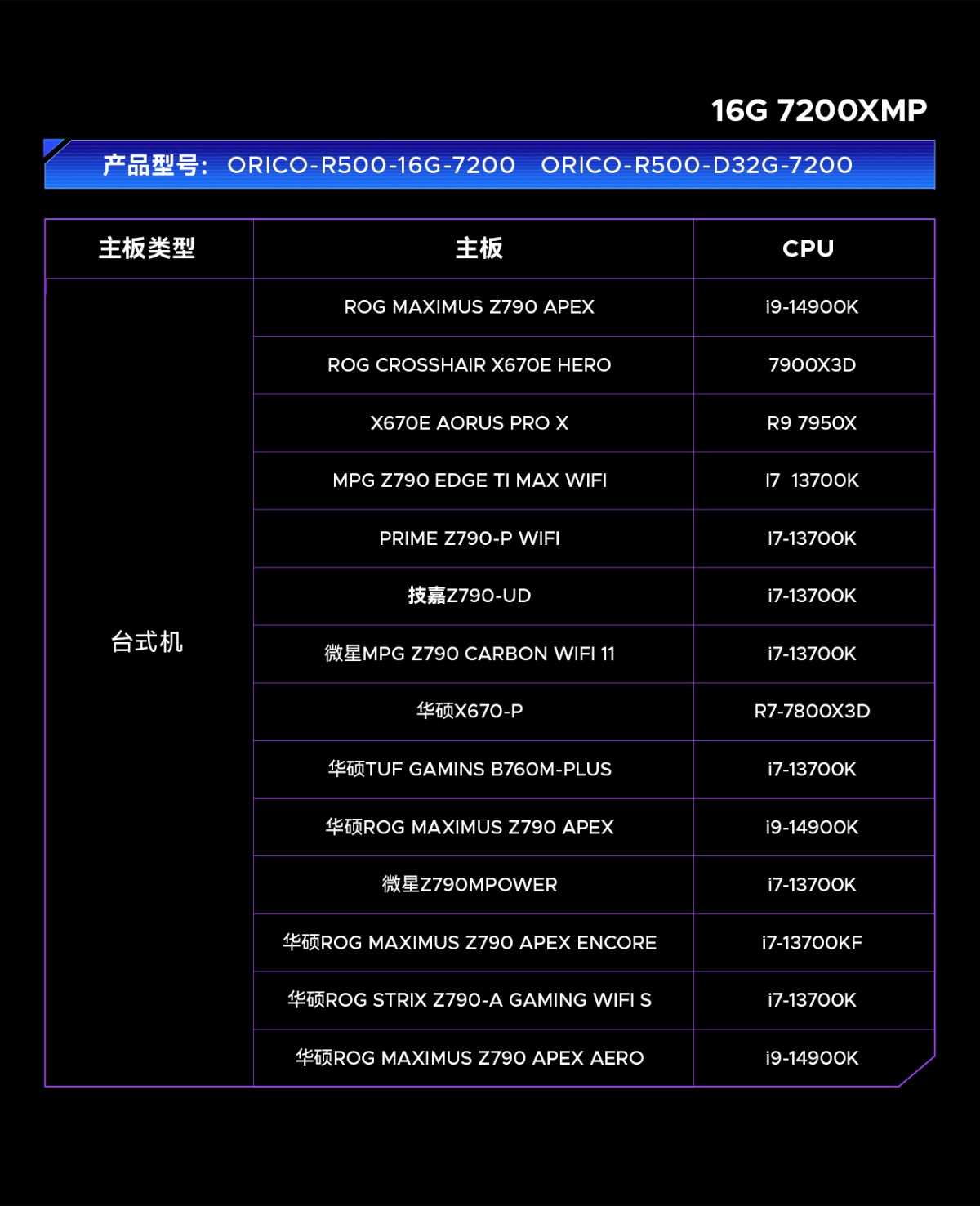 6000MHz/6400MHz/7200MHz/