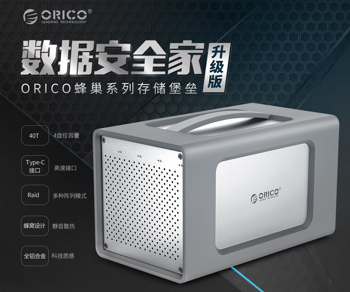 3.5英寸四盤位Type-C帶陣列硬盤柜,豐巢系列帶提手