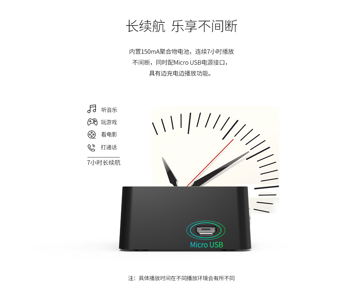 7h續(xù)航,10m傳輸,高保真音效,無線藍(lán)牙接收器