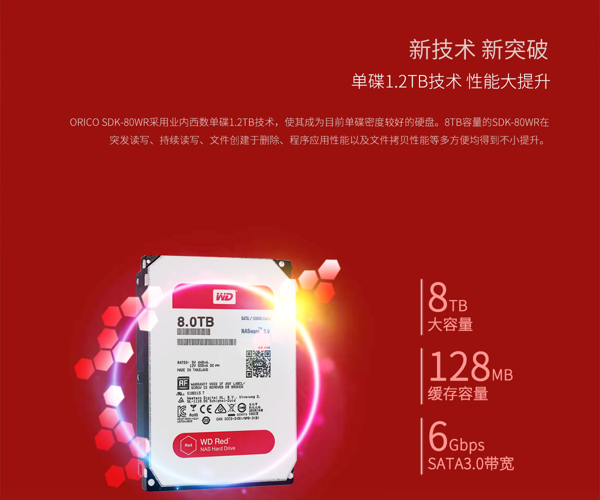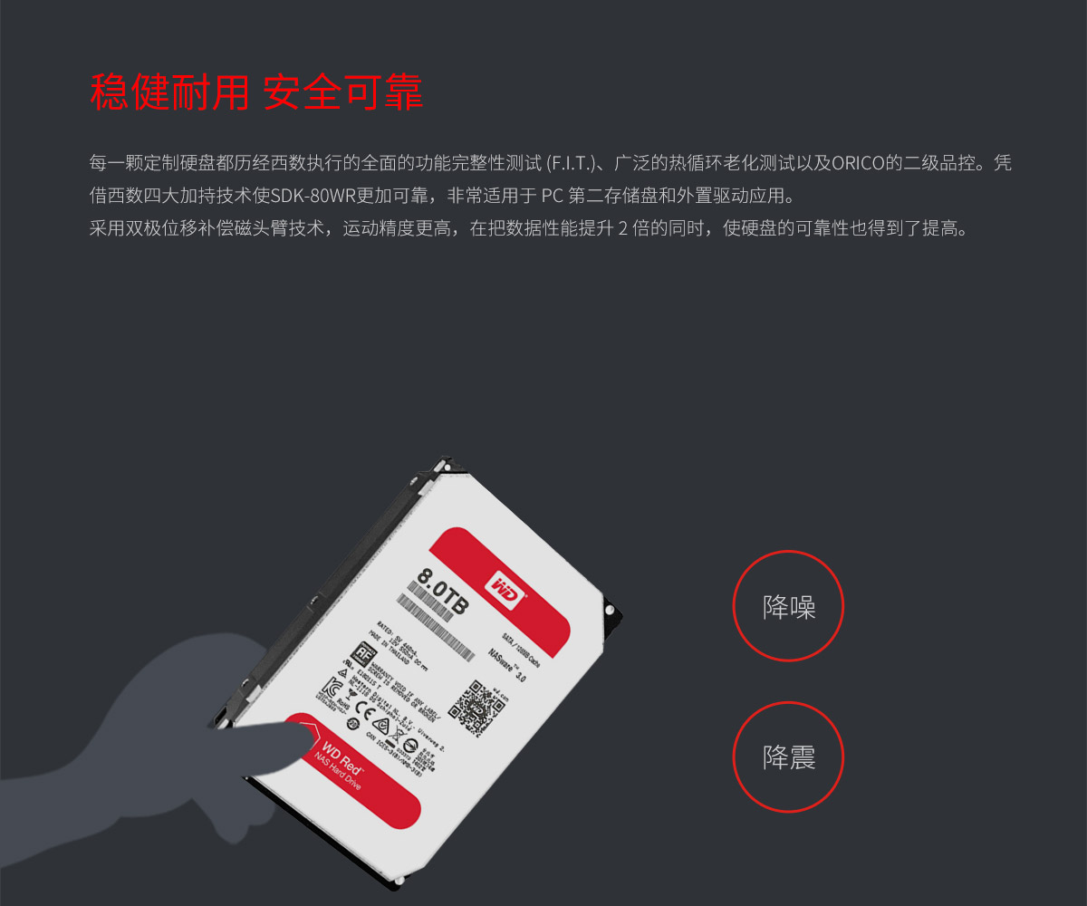 企業(yè)級(jí)定制紅盤,SATA3.0接口,6Gbps快速傳輸,封閉減震裝