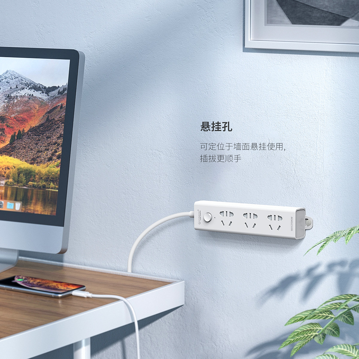 一健總控開關排插,可懸掛使用,小巧纖細,3年質保承諾,售后無憂。