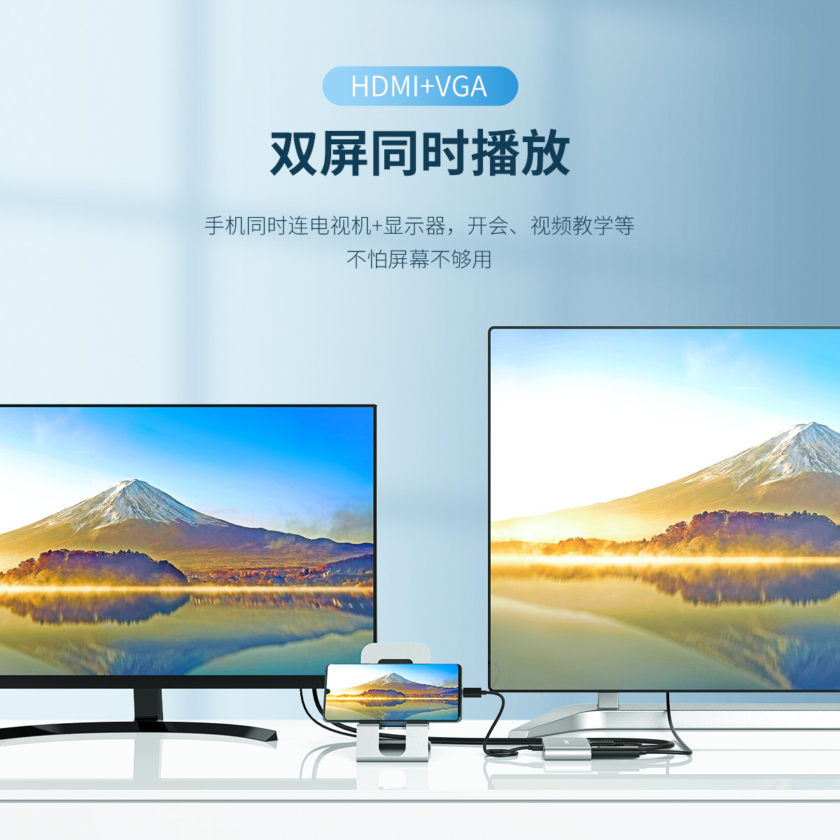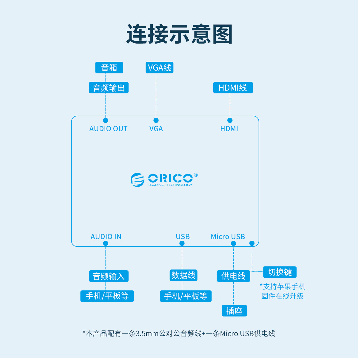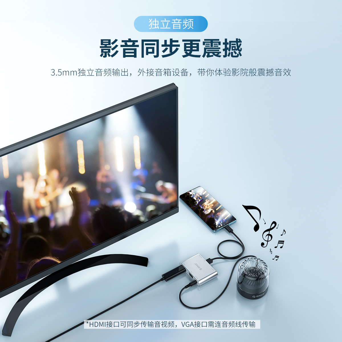 1080P@60HZ高清分辨率,HDMI/VGA雙接口,3.5MM獨(dú)立音頻輸出,外接供電,即插即用,鋁合金外殼