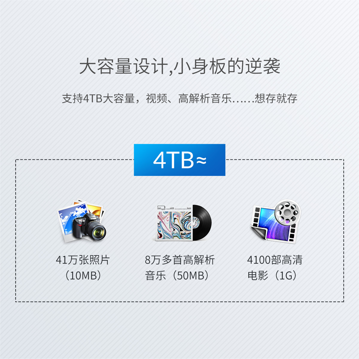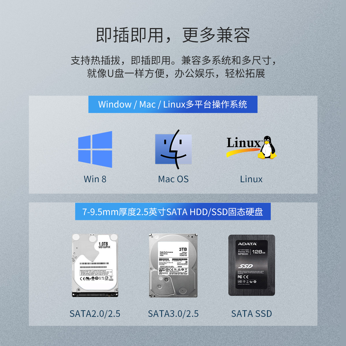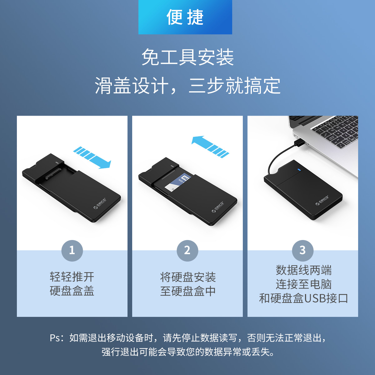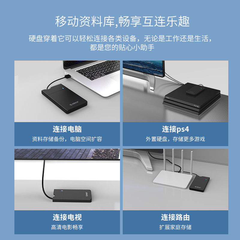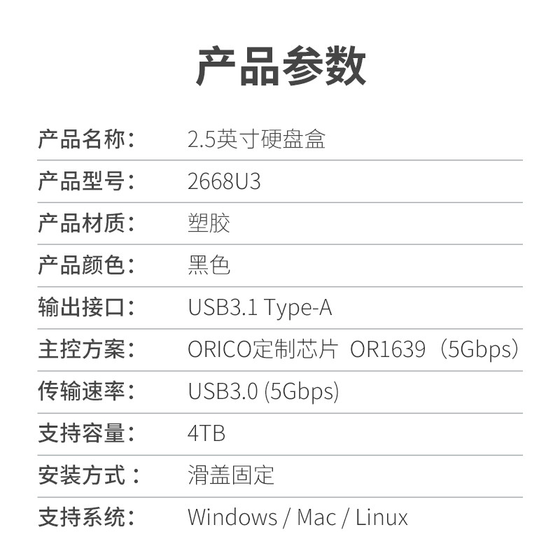 USB3.0接口,線盒一體,輕松收納,免工具安裝,滑蓋設(shè)計(jì),支持4TB大容量