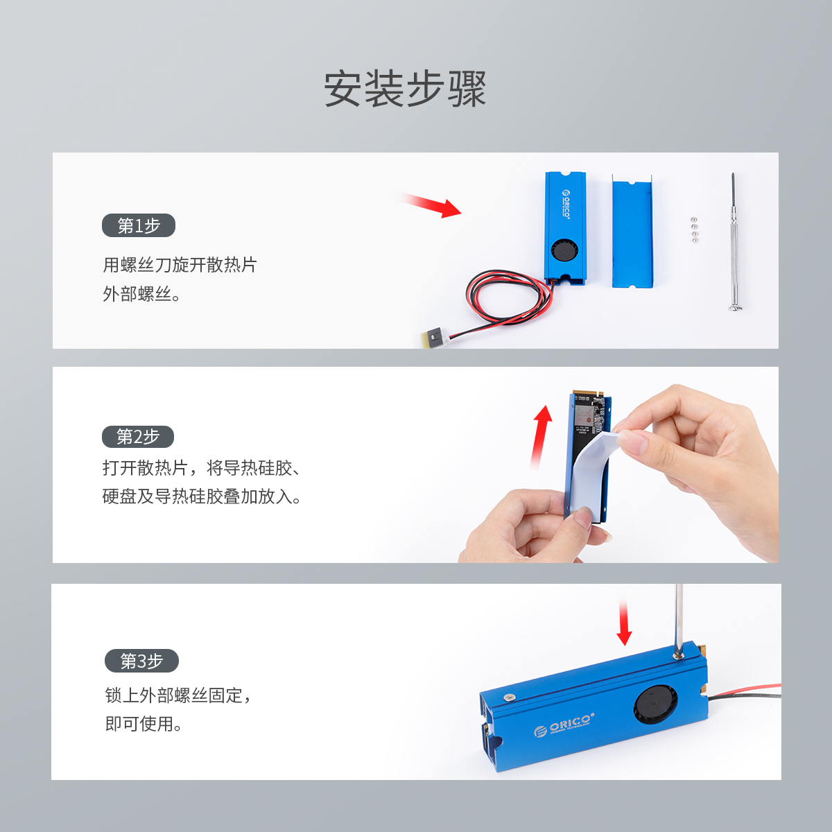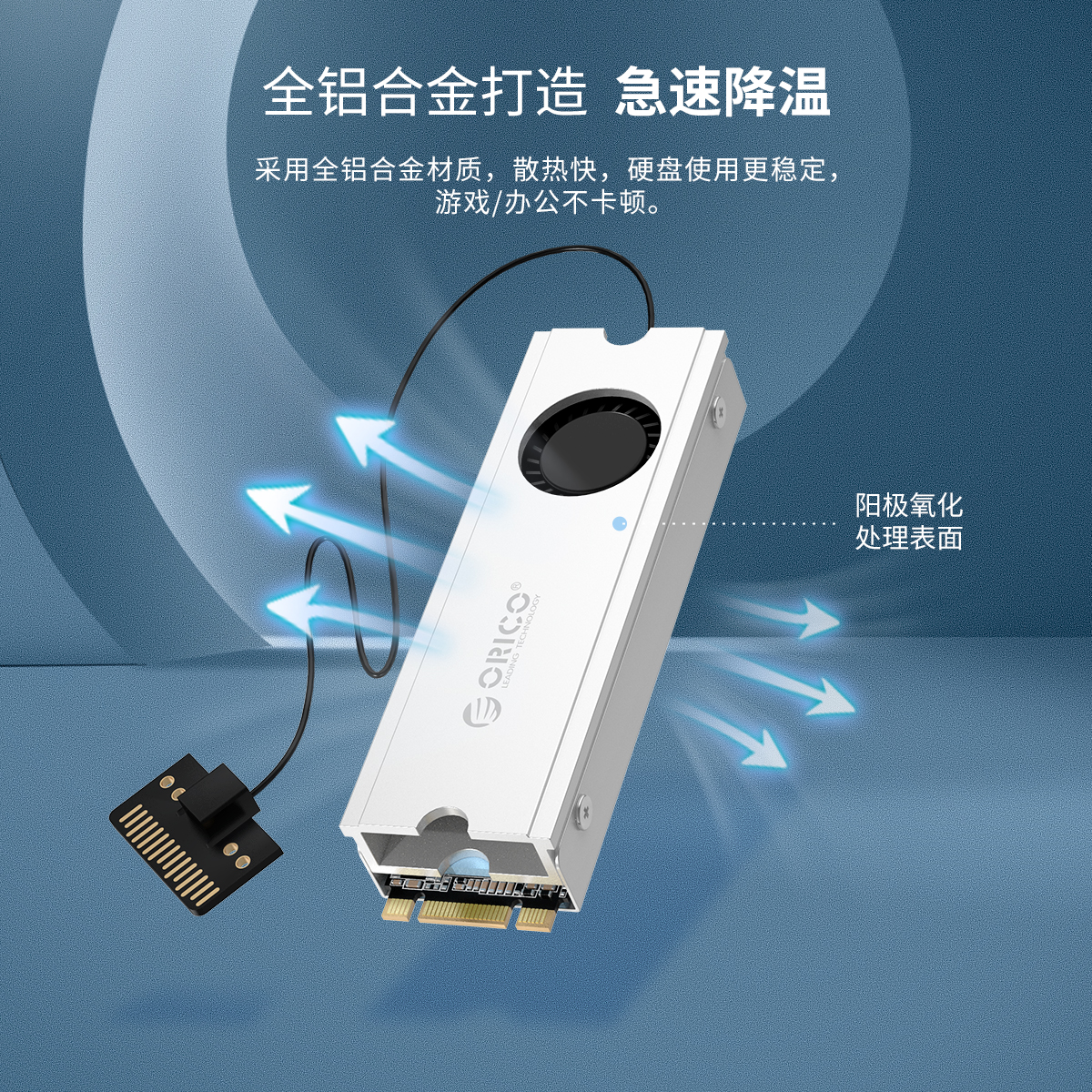 自帶風扇,告別高溫,全鋁材質(zhì),快速導熱,魚鰭紋設(shè)計加帶導熱硅膠,高效散熱,三色金屬風,任你選擇。