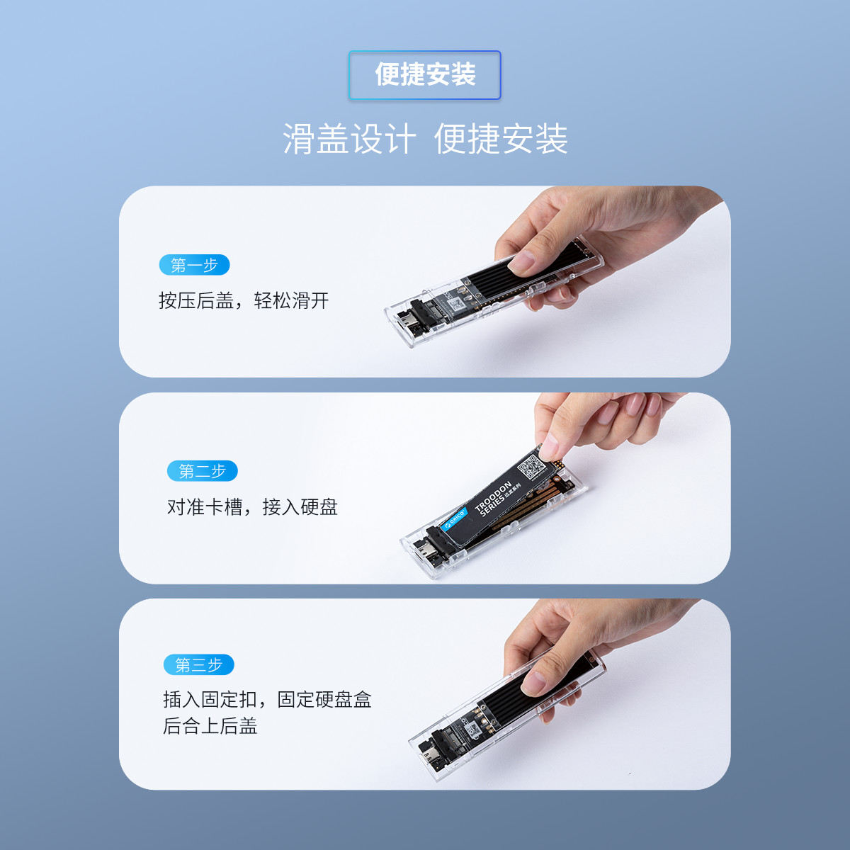 NGFF M.2透明硬盤盒,免工具Type-C接口透明硬盤盒