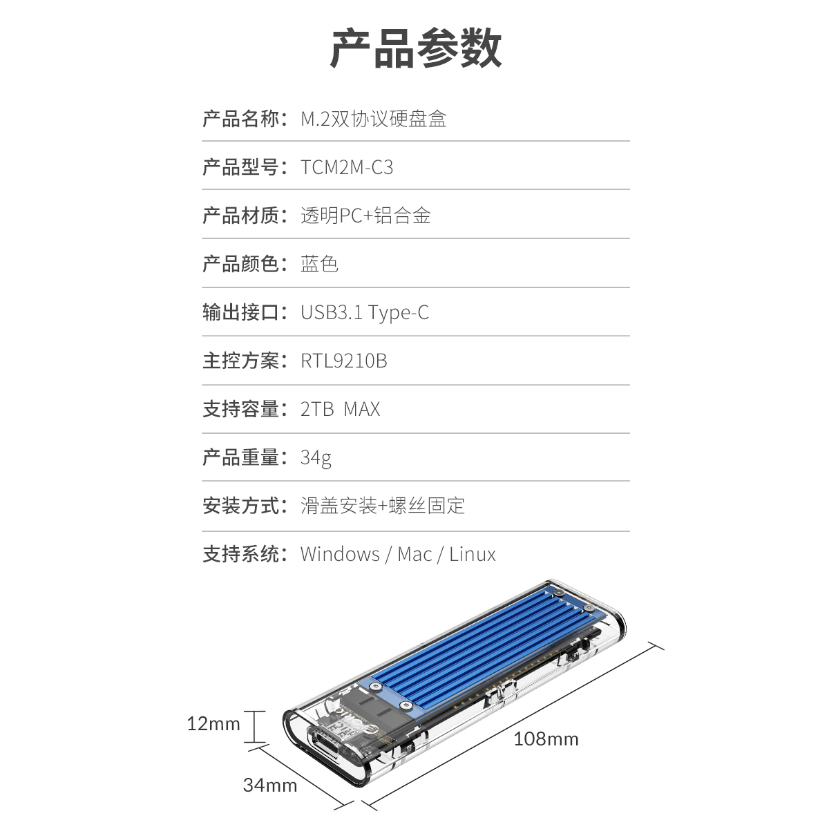 M.2/mSATA硬盤盒