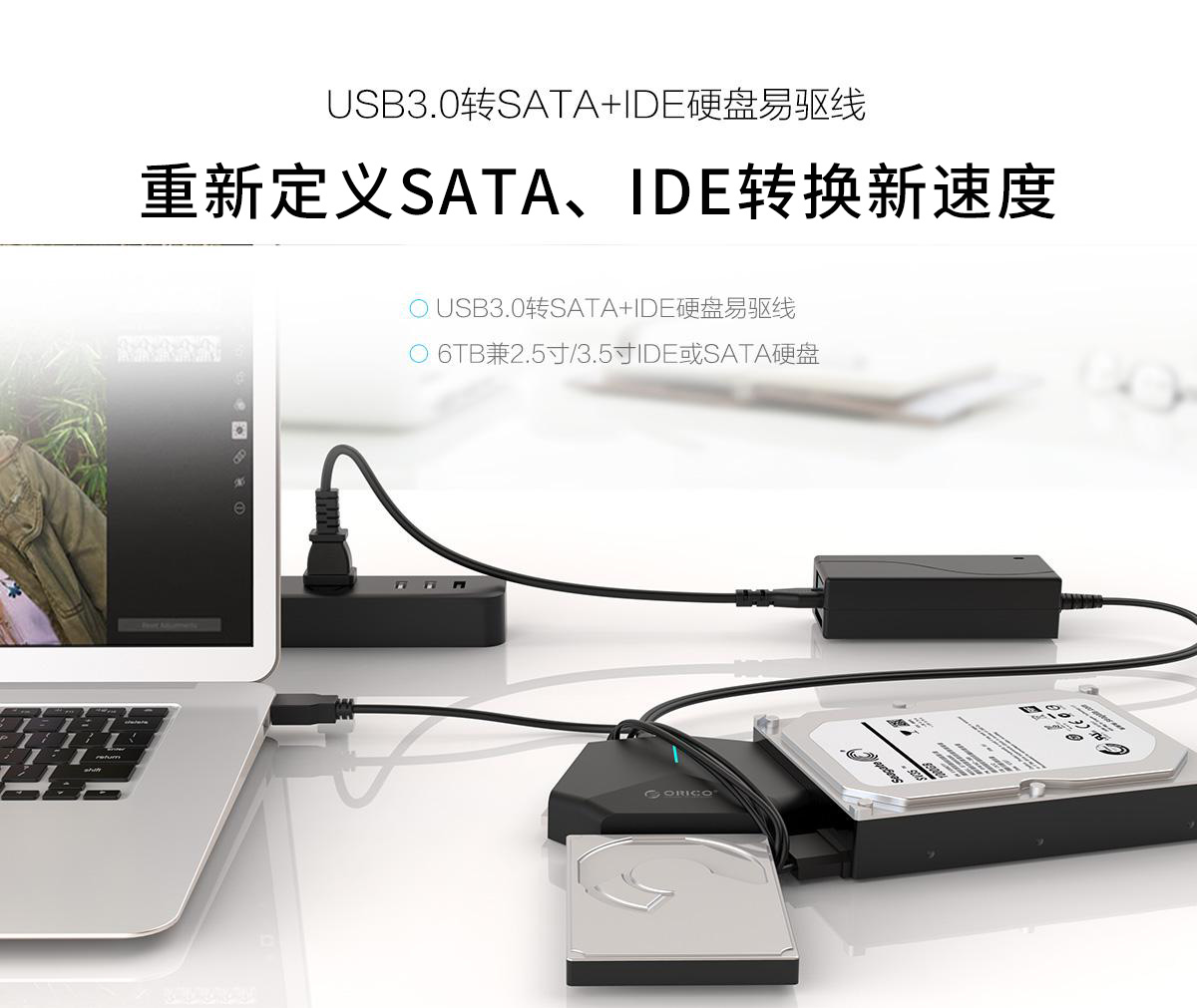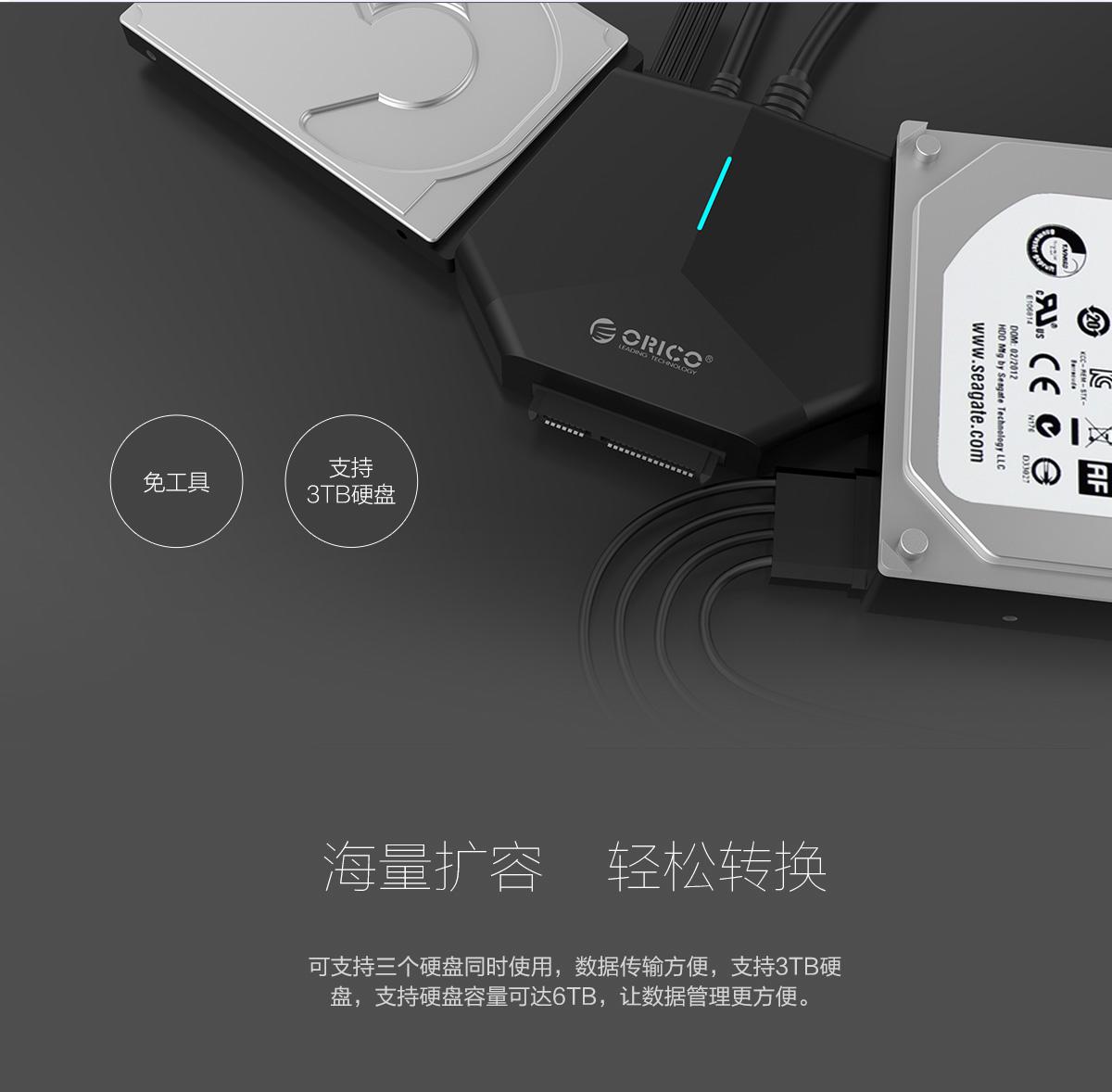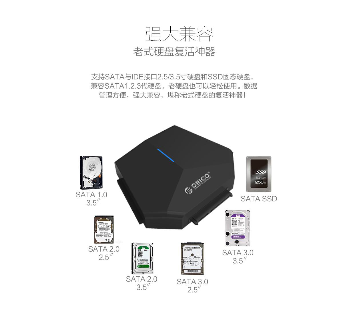 支持2.5/3.5寸SATA與IDE硬盤,帶12V供電接口,支持6TB