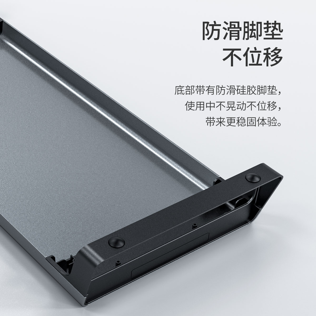 面板采用品質鋁合金打造,高硬度耐耗損,可輕松承載30斤重物,底部帶有防滑硅膠腳墊,