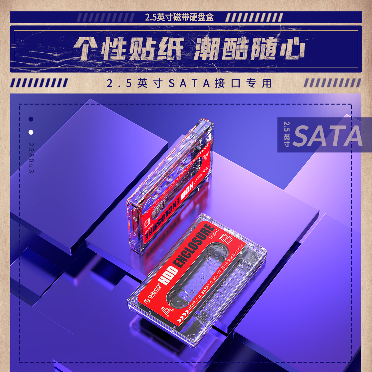 個性貼紙潮酷隨心,2.5英寸SATA接口專用,復古懷舊的透明磁帶款式