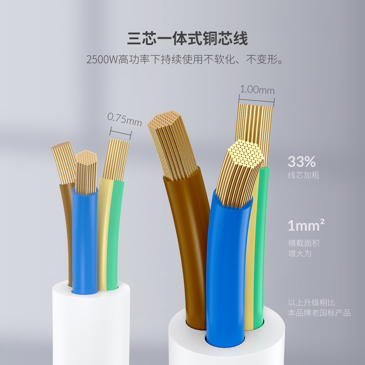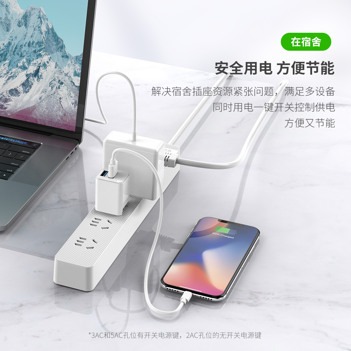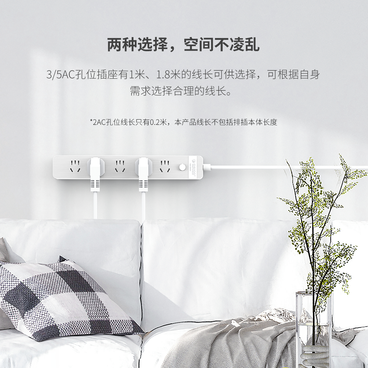 總控開關排插,簡約條紋,一鍵電源斷電,安全用電方便節能,三芯一體式銅芯線