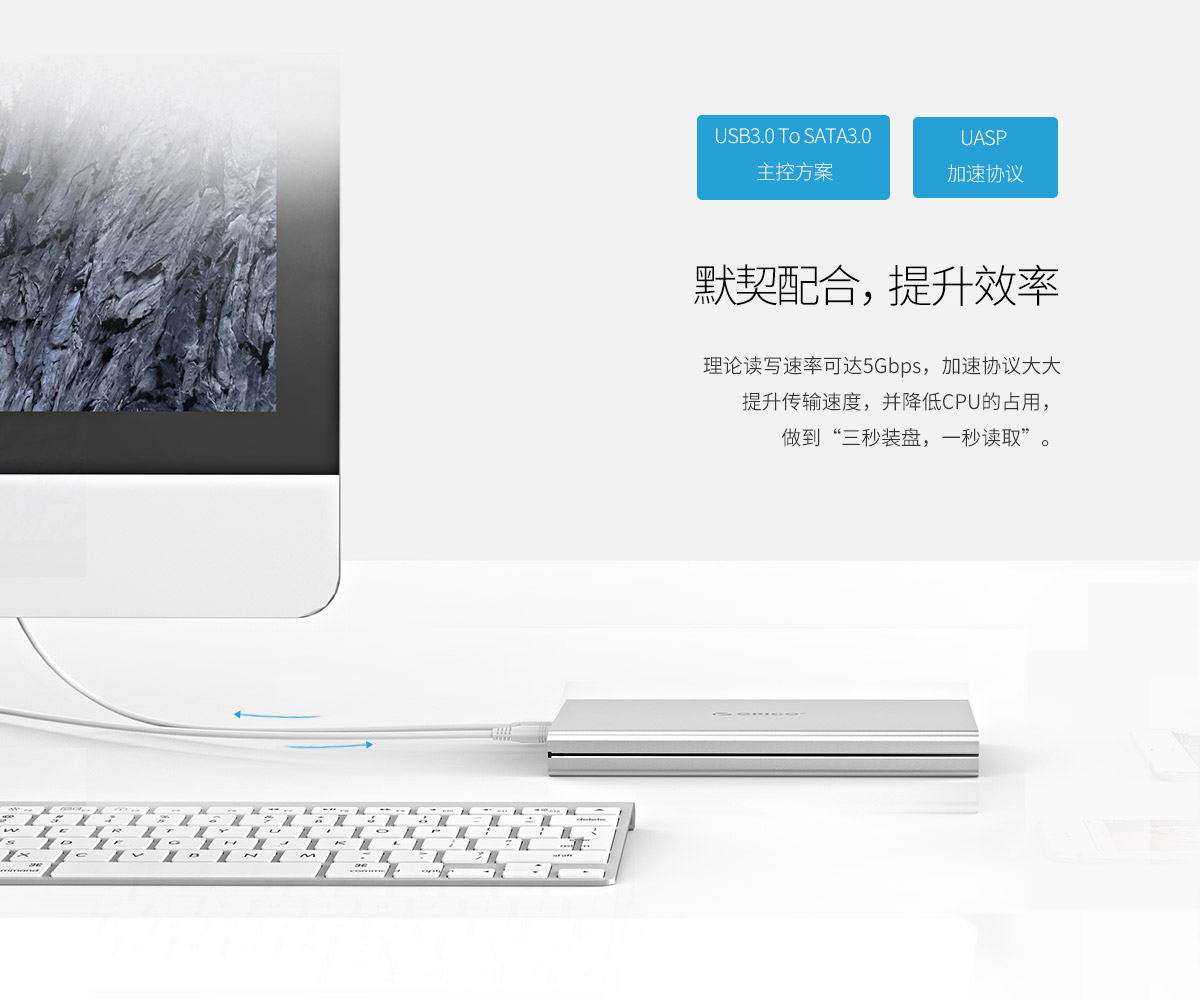 5Gbps速度,鋁合金材質,三秒裝盤,一秒讀取