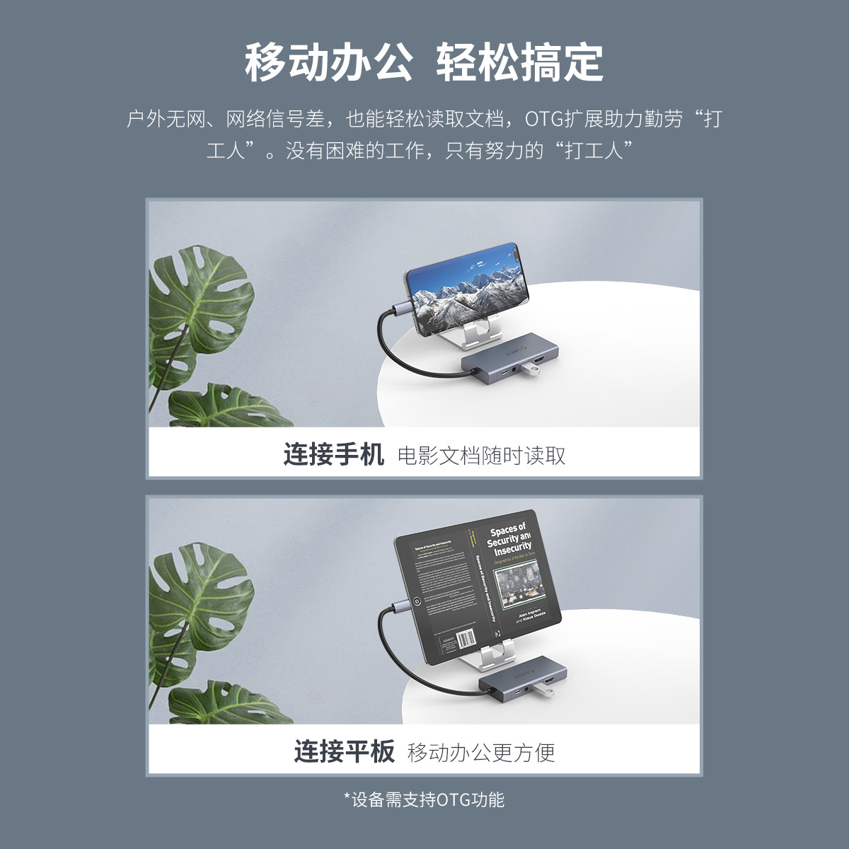 五口擴展,USB Type-C口支持PD2.0,HDMI支持4K 30HZ視頻傳輸,HDMI+VGA雙視頻接口,標準的DC3.5MM音頻接口,內置數字音頻編解碼器