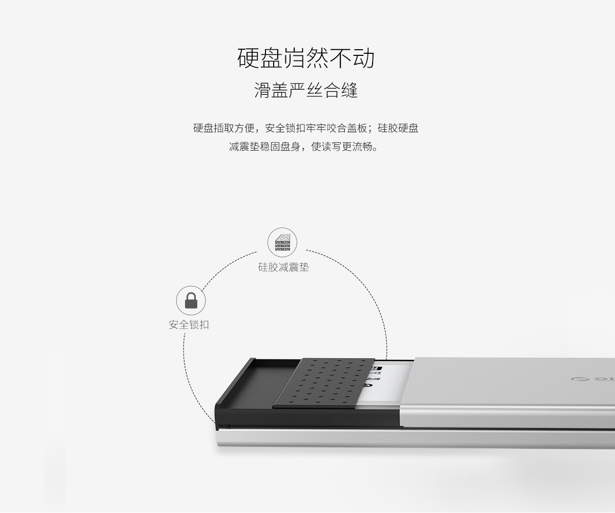 硬盤插取方便,硅膠硬盤減震墊穩固盤身,使讀寫更流暢。