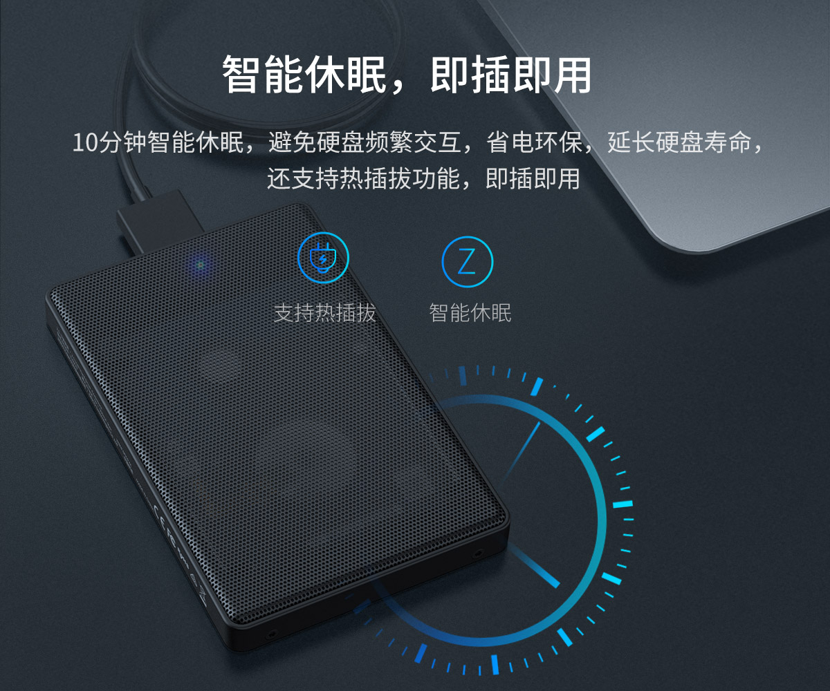 10分鐘智能休眠,支持熱插拔功能,即插即用。