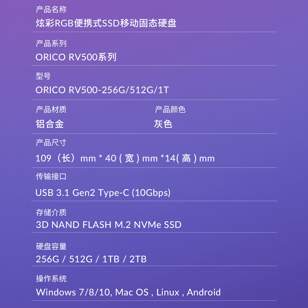 炫彩RGB便攜式SSD移動固態硬盤