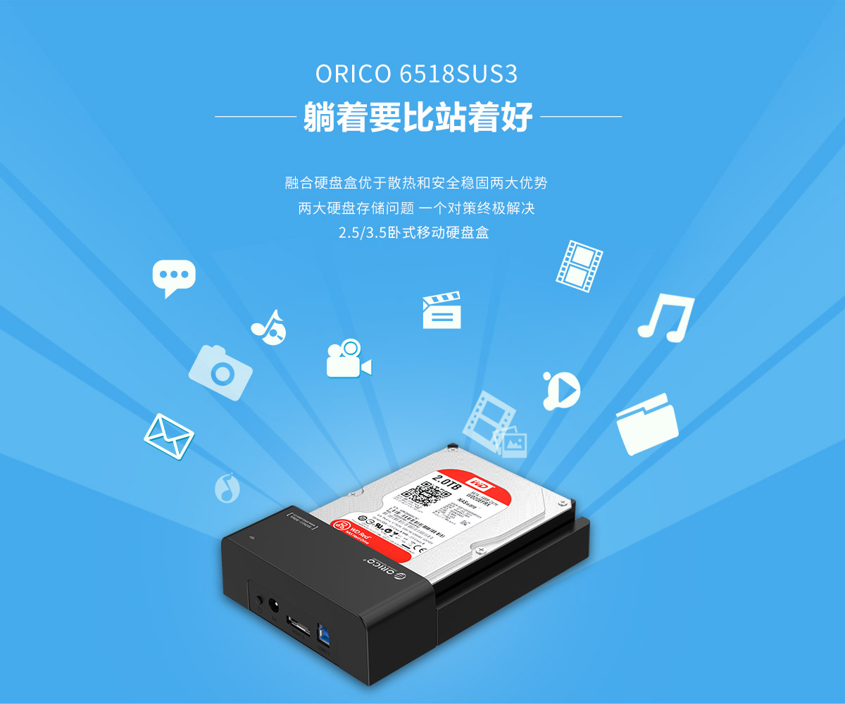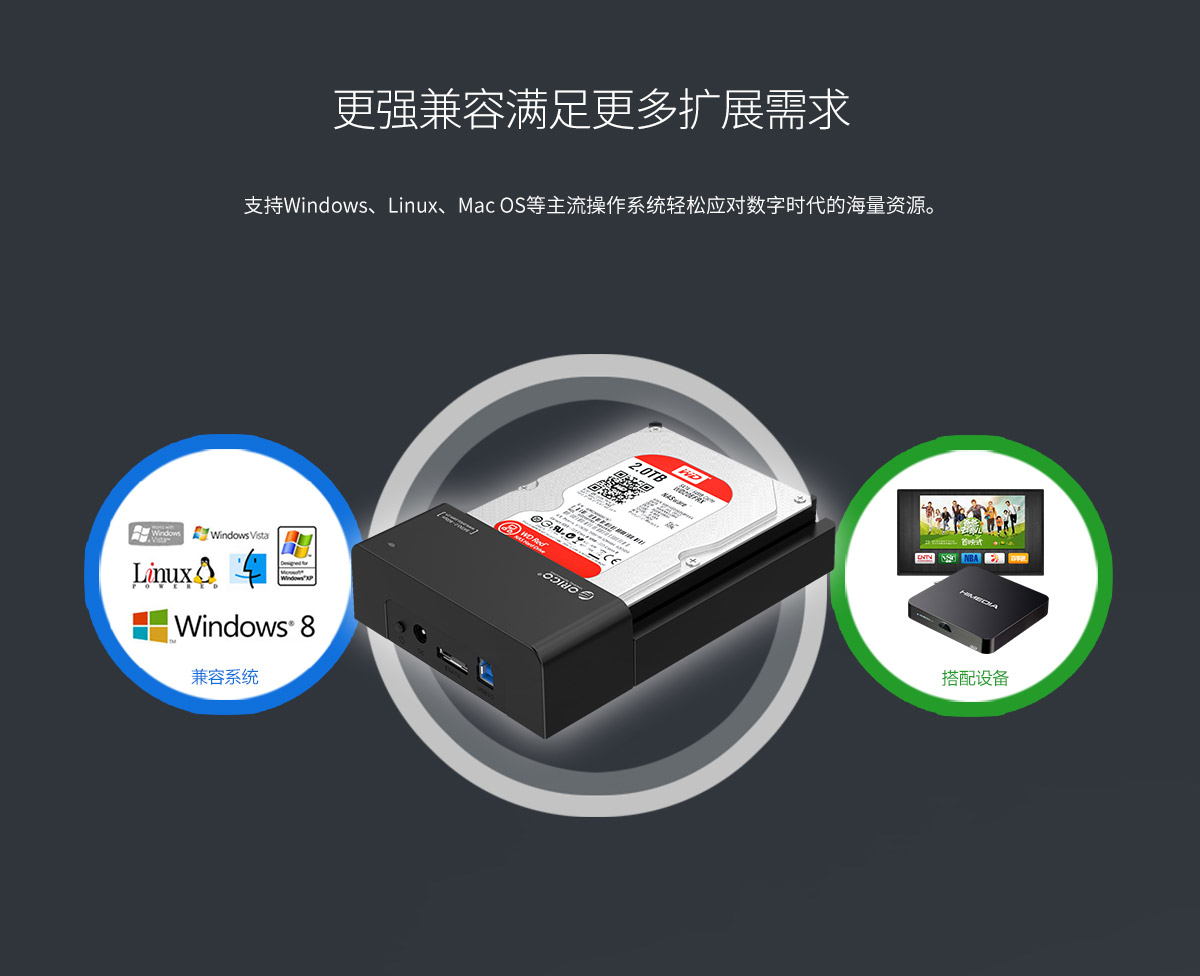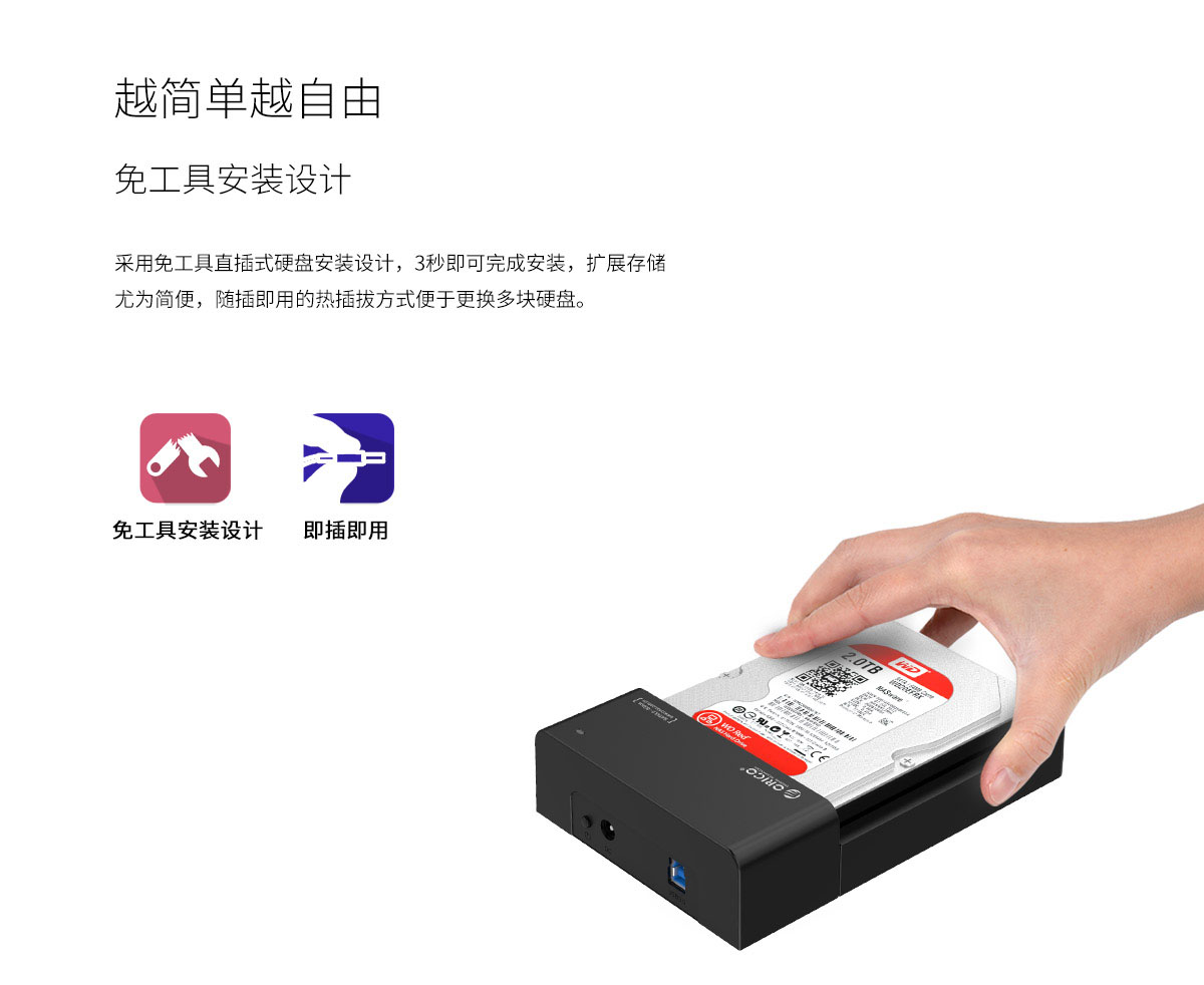 USB3.0接口,5Gbps理論速率,支持18TB大容量,24W強勁供電,開放式散熱