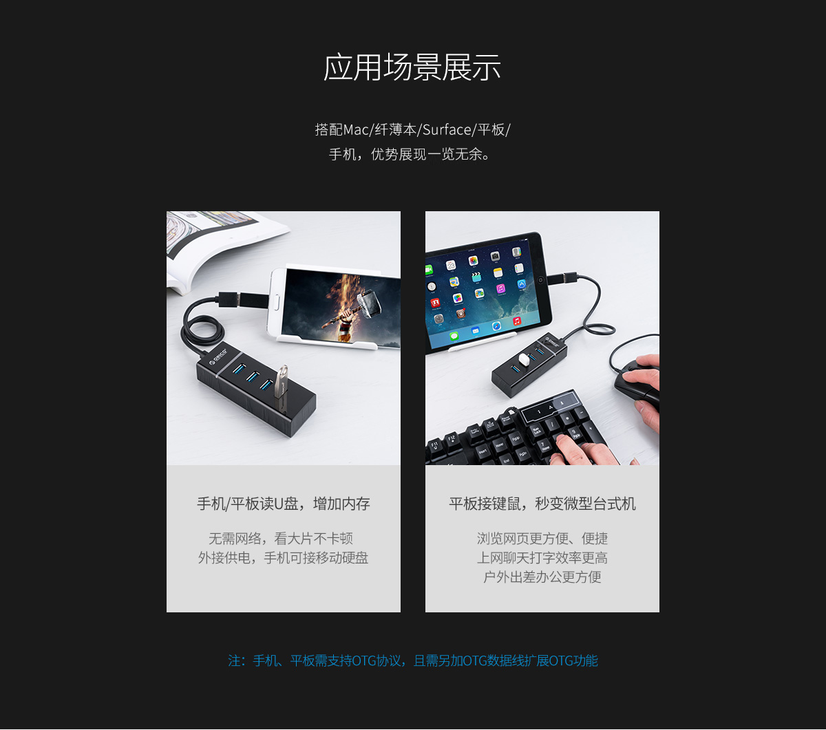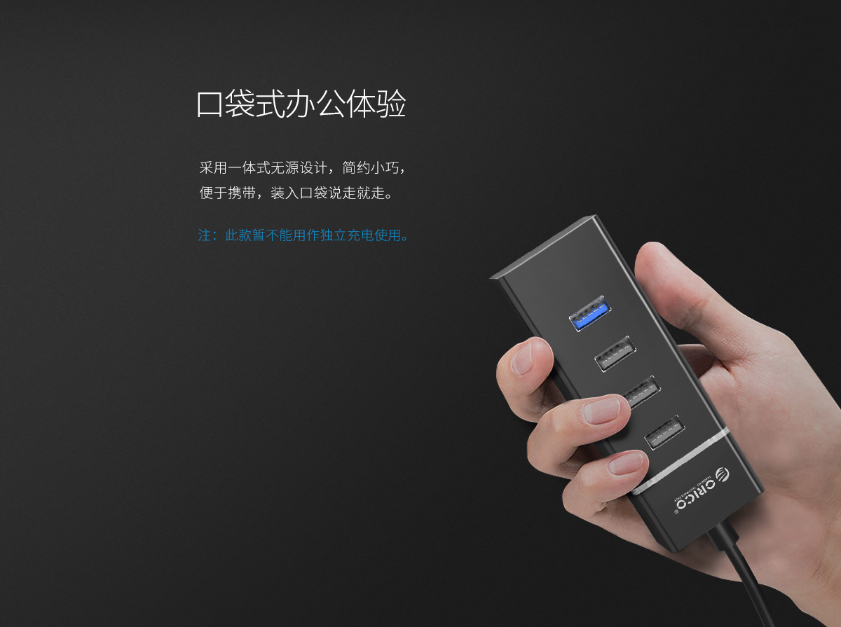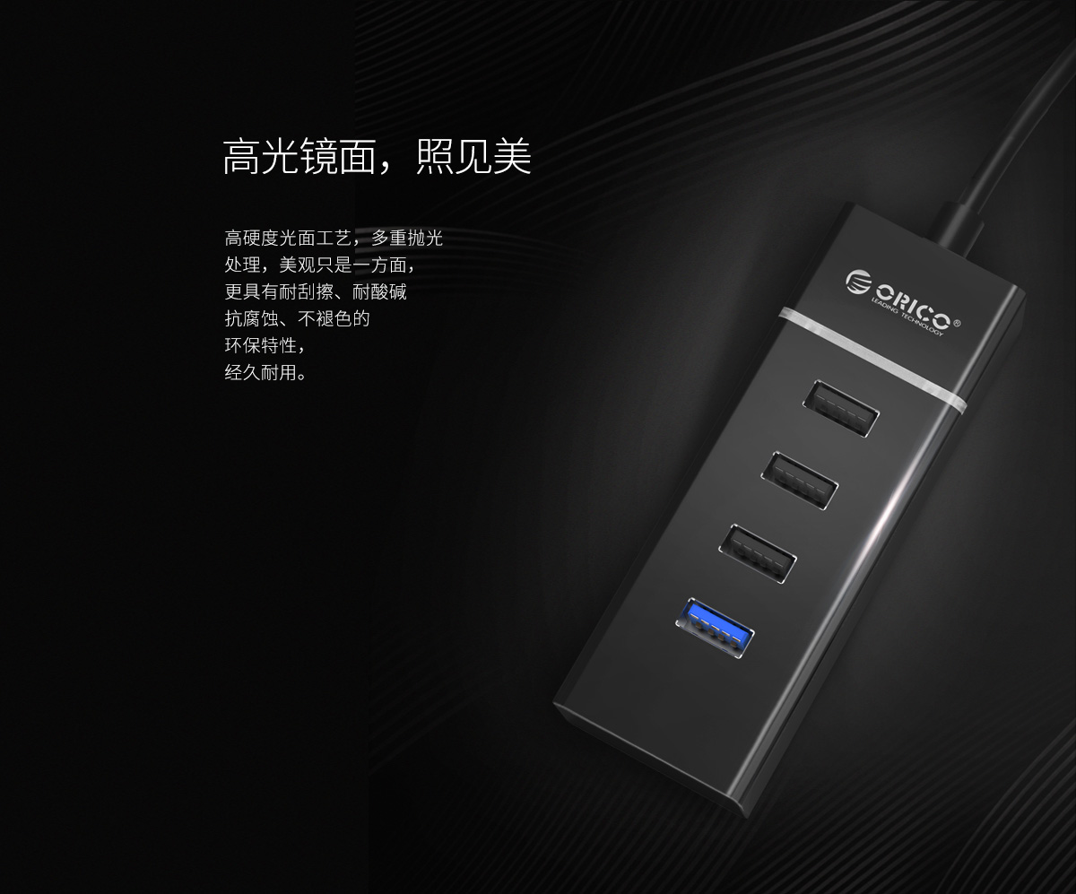 連體設計 30cm數據線長 內透LED指示燈 3+1USB接口擴展