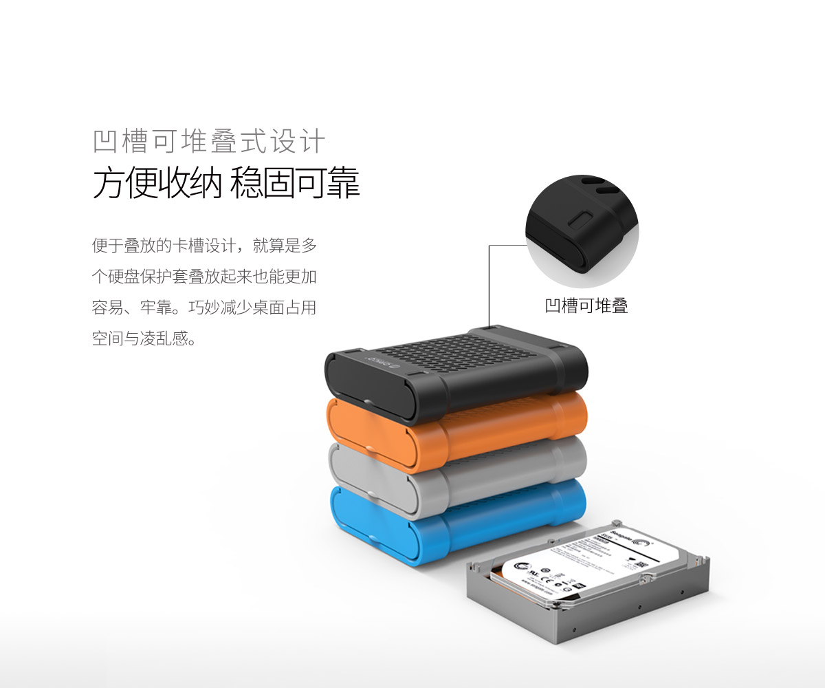 可直連硬盤(pán)易驅(qū)線讀取數(shù)據(jù),多散熱孔設(shè)計(jì),凹槽可堆疊,方便收納,多色可選