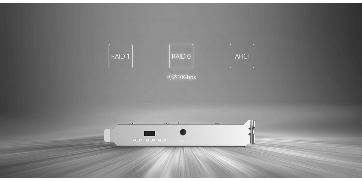 支持RAID 0/RAID 1/ AHCI三種模式,組建RAID 0模式,支持傳輸速度可達10GBPS