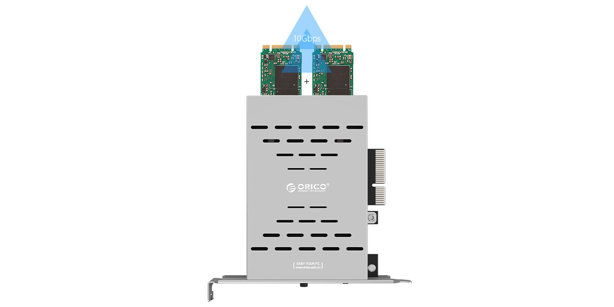 使用兩個M.2固態硬盤組建RAID 0磁盤陣列模式,配合PCI-E插口實現10Gbps,為追求速度的電腦玩家提供高速的運行體驗,享受流暢的游戲快感。
