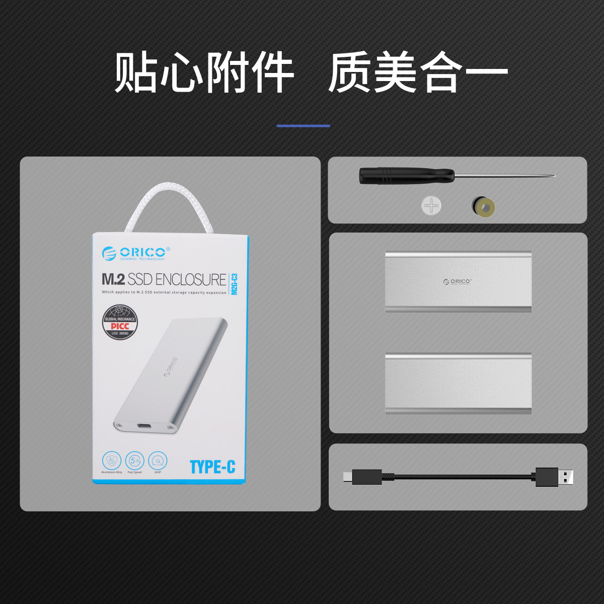 M.2轉(zhuǎn)Type-C鋁合金固態(tài)硬盤盒(方形)