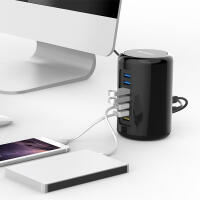 獨(dú)特的圓柱型一體化設(shè)計(jì)再加上沉穩(wěn)的漆黑主色,無(wú)意散發(fā)出一股簡(jiǎn)約與穩(wěn)重相結(jié)合的氣息。與蘋(píng)果產(chǎn)品所追求的簡(jiǎn)約時(shí)尚理念產(chǎn)生藝術(shù)性的碰撞。如此一款產(chǎn)品,相信對(duì)于部分文藝范的用戶而言,在視覺(jué)討好程度上來(lái)說(shuō)絕不亞于一些精美的桌面擺設(shè)品,何況ORICO RH7-U3還是個(gè)功能實(shí)用的數(shù)碼設(shè)備。