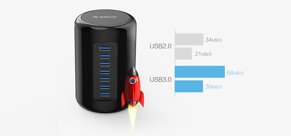 還在為外接設(shè)備越來(lái)越多而凌亂嗎,還在為USB接口不足而煩惱困擾嗎,ORICO RH7-U3一次性為您提供7個(gè)接口,解決您的接口稀缺煩惱。同時(shí),理想的接口排列間隙分布,即便用同時(shí)段使用7個(gè)端口,也不會(huì)產(chǎn)生因排插之間過(guò)于擁擠而使USB接口出現(xiàn)插拔困難的情況。