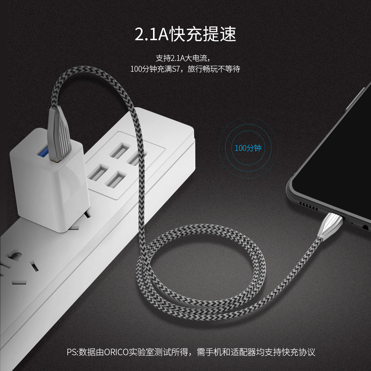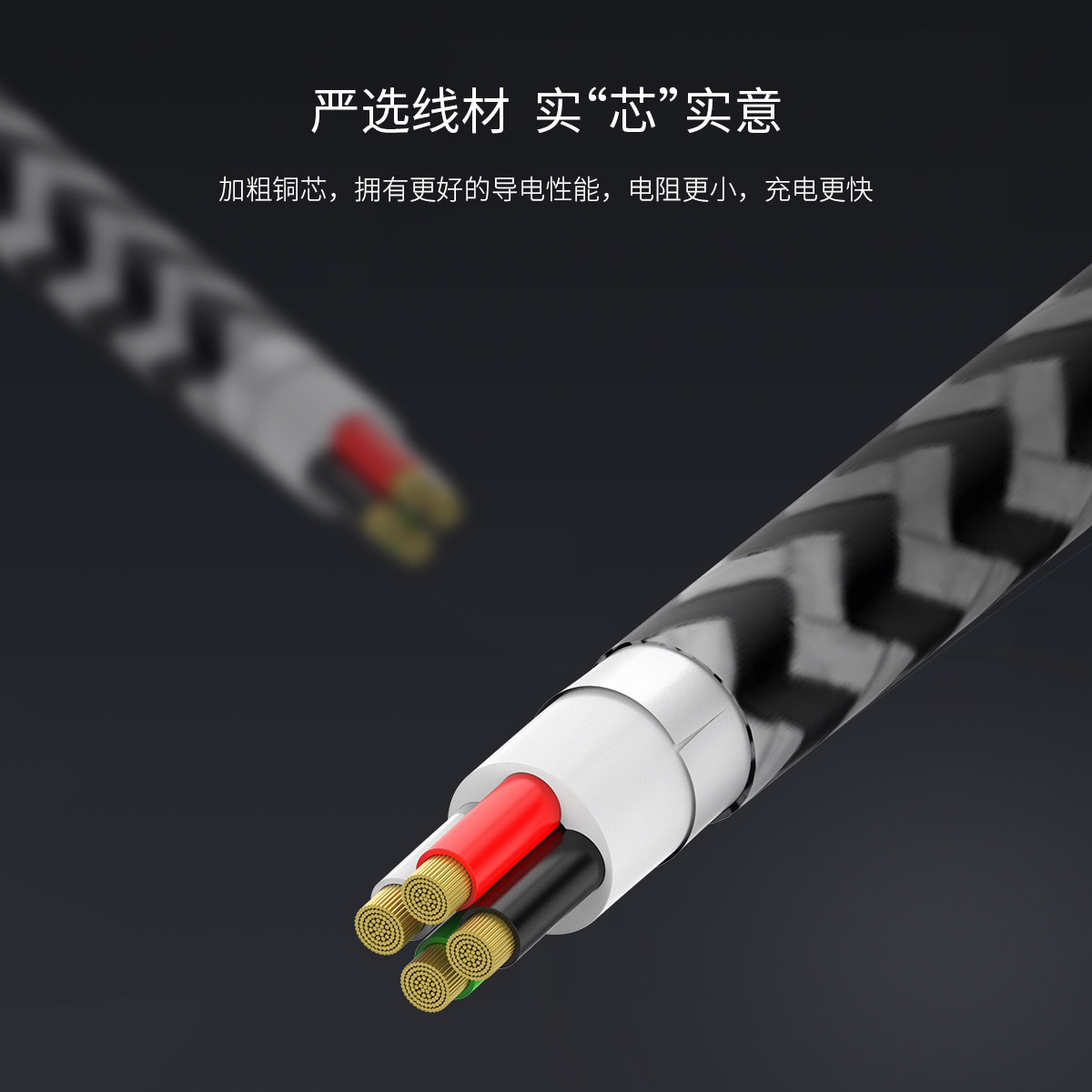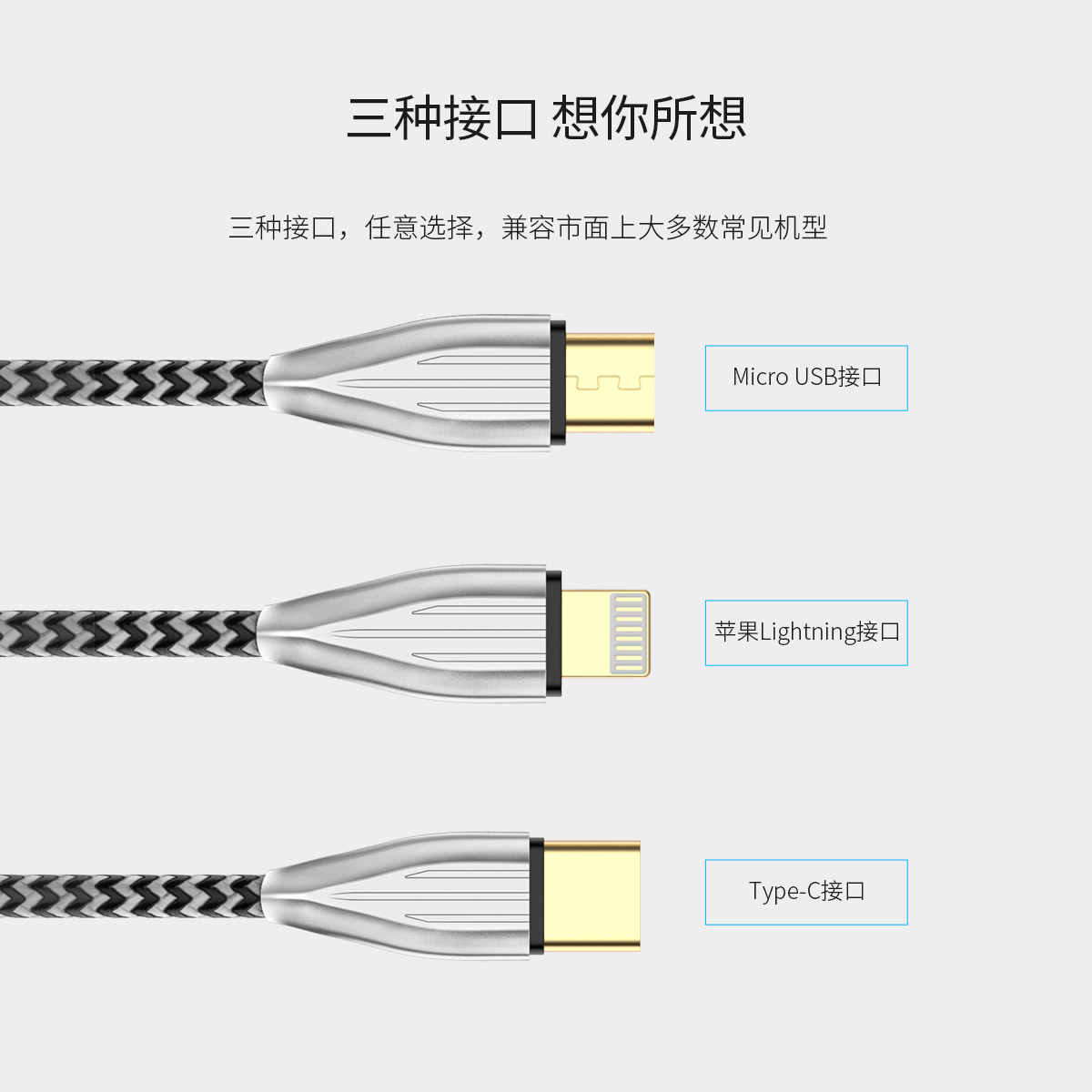 支持2.1A大電流,鋁合金外殼不發燙,加粗銅芯,電阻小,編織線身