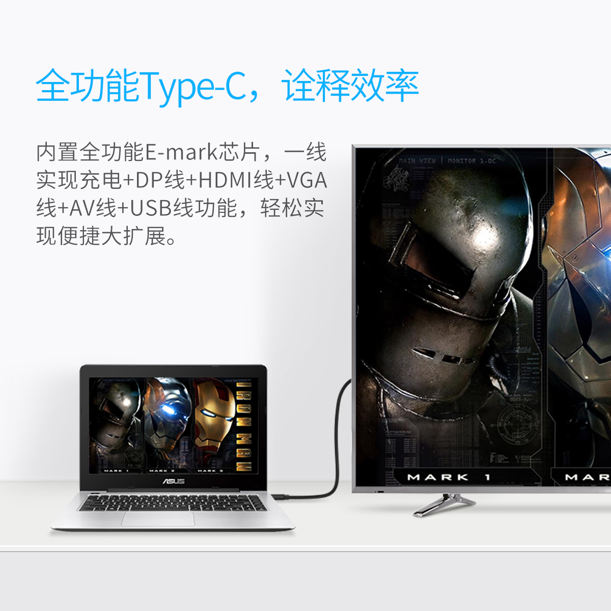內置全功能E-mark芯片,一線實現全功能,輕松實現便攜大擴展