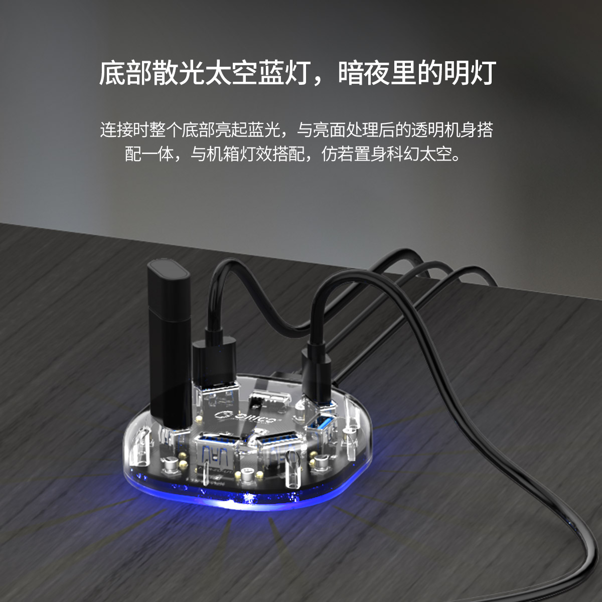 透明系列集線器 內透藍光指示燈 立式插拔設計 小巧便捷