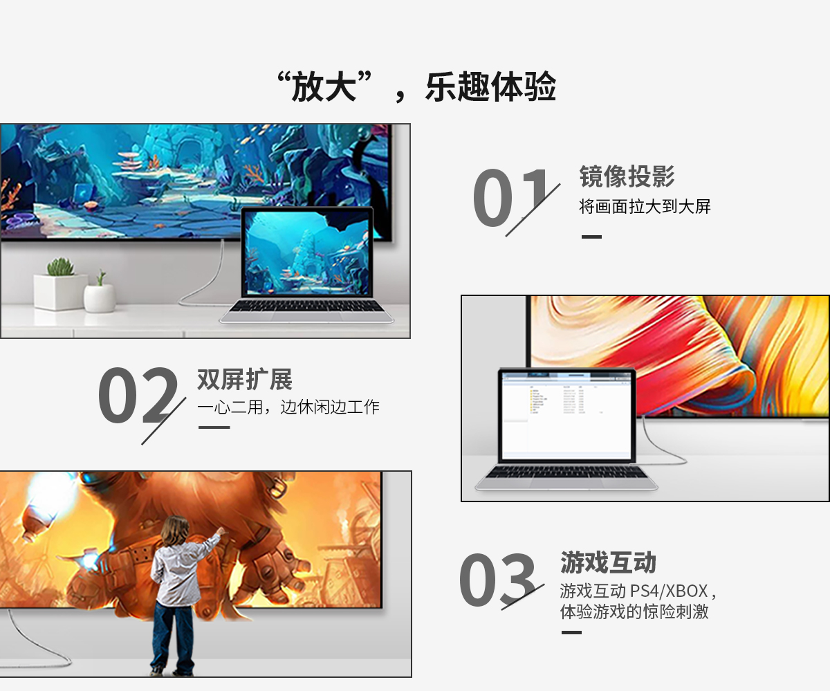 4mm纖細(xì)線身,HDMI2.0,4K高清畫(huà)質(zhì),3D特效畫(huà)面,音視頻同傳