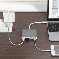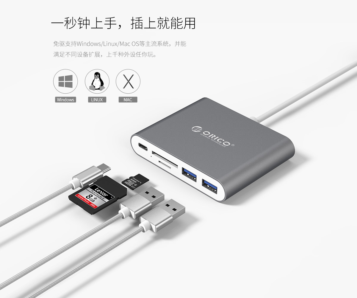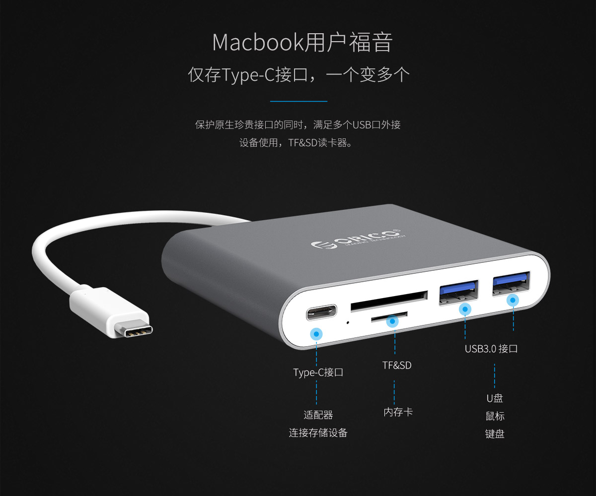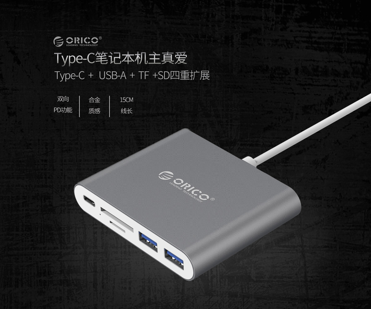 鋁合金Type-C轉(zhuǎn)Type-C/Type-A/TF/SD多功能擴(kuò)展塢