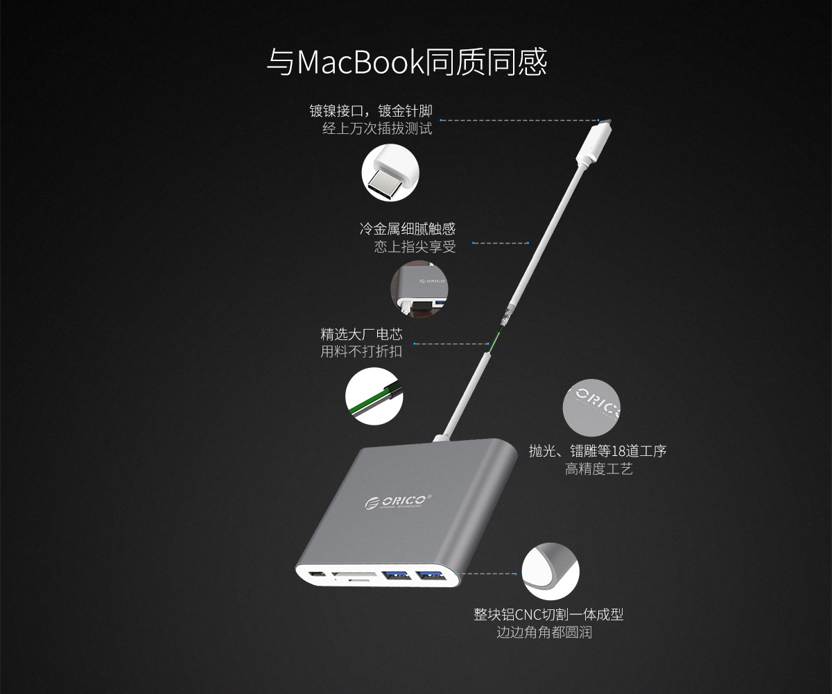 多接口多功能擴(kuò)展 PD雙向接口 高清視頻擴(kuò)展 一體式數(shù)據(jù)線 鋁合金機(jī)身