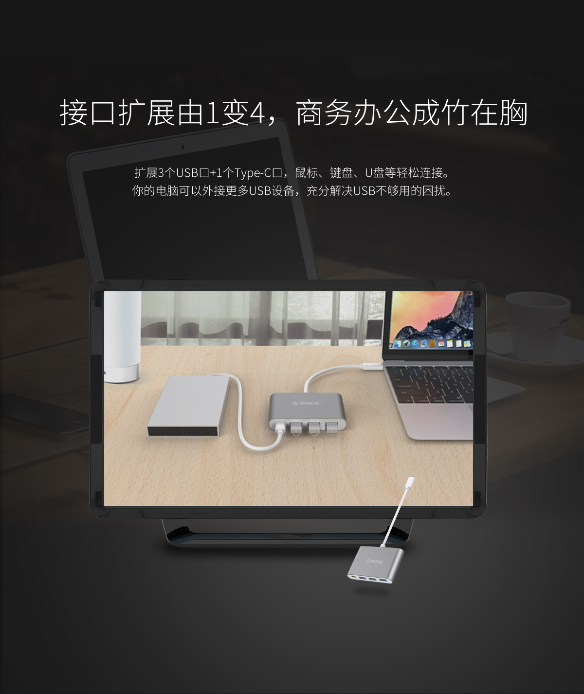 鋁合金Type-C轉 Type-C/Type-A多功能擴展塢