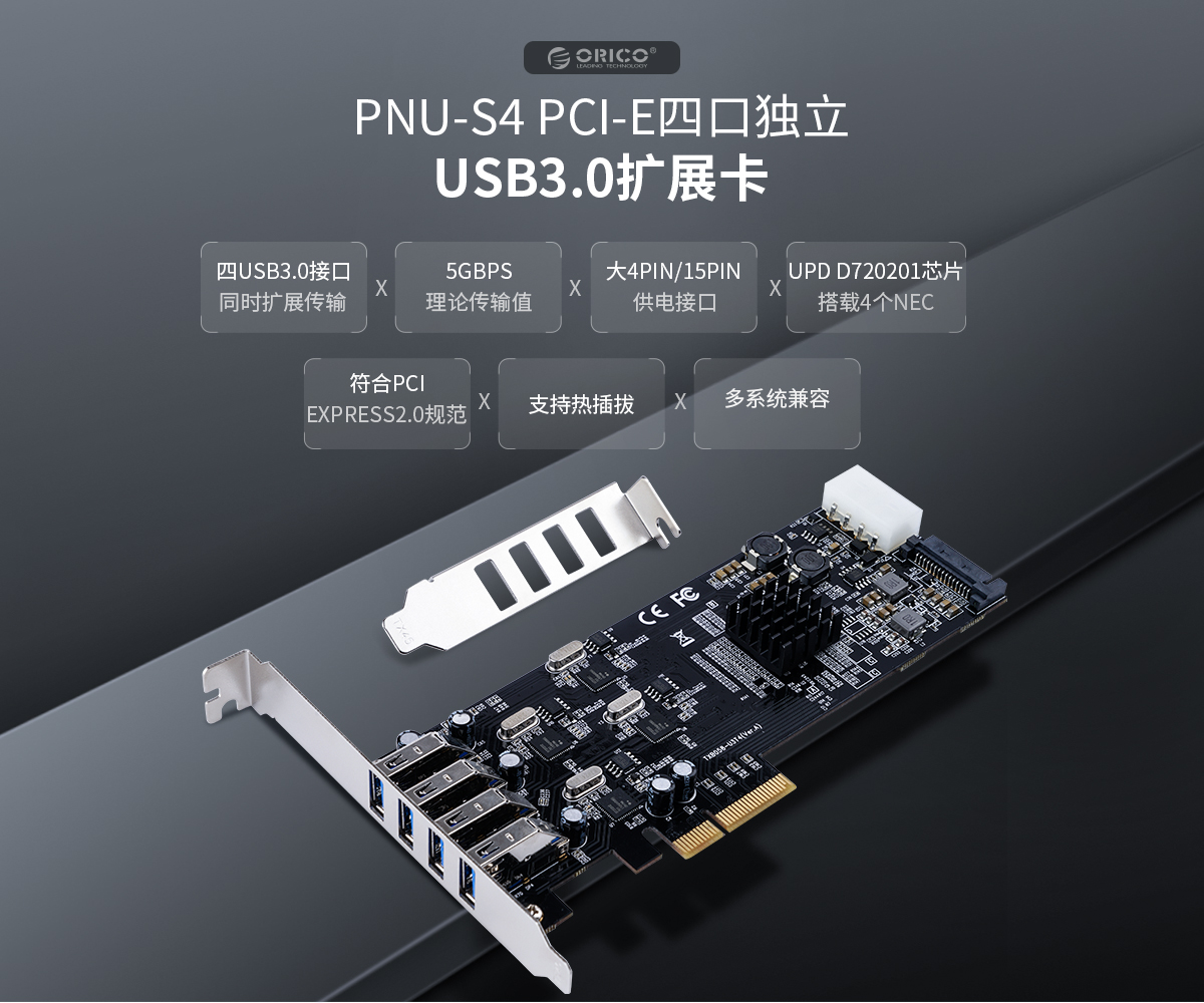 4口獨立USB3.0 PCIE擴展卡,兼容PCI-E X4/8/16