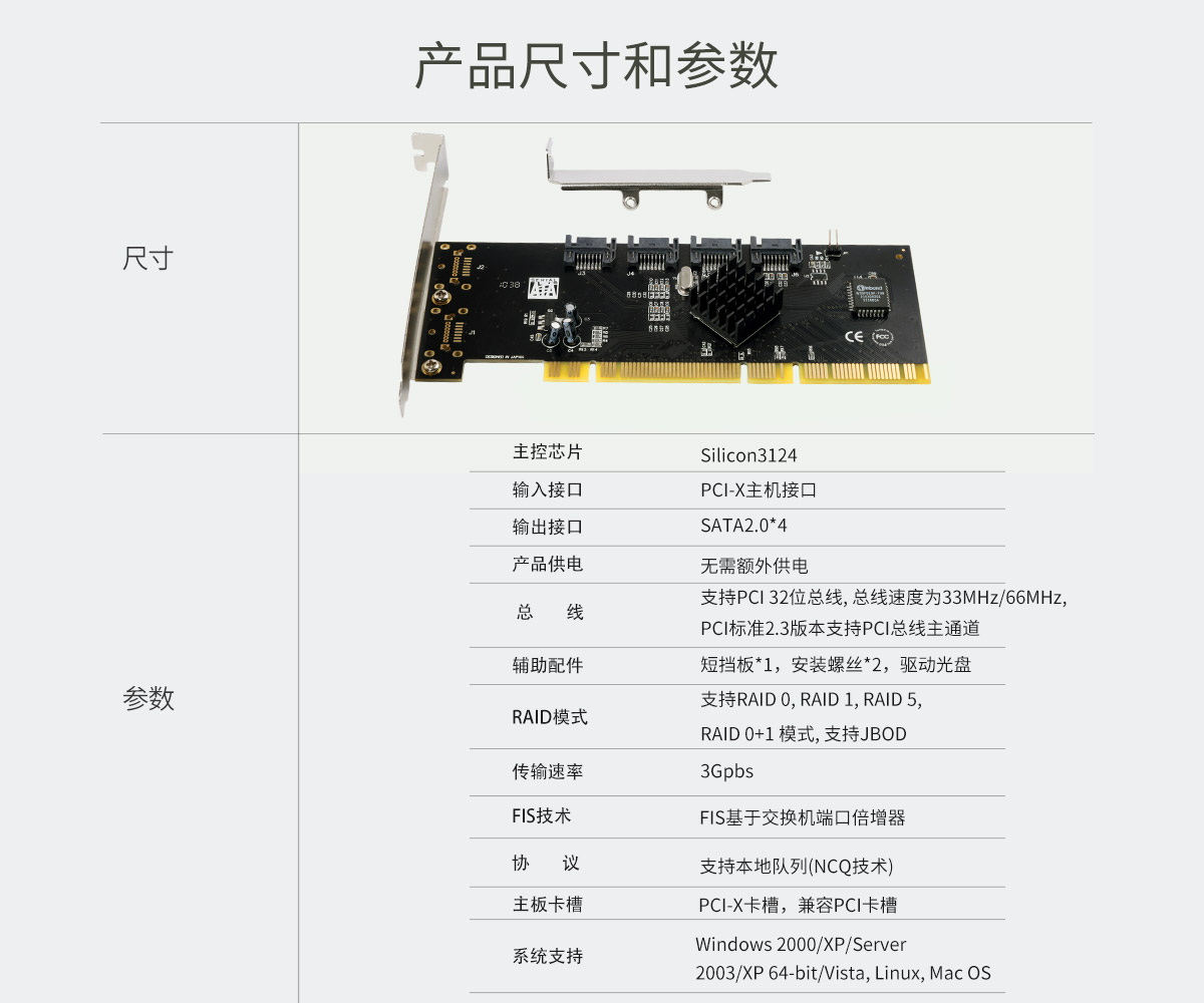 4口SATA2.0 PCI-E 擴(kuò)展卡 采用Silicon 3124芯片