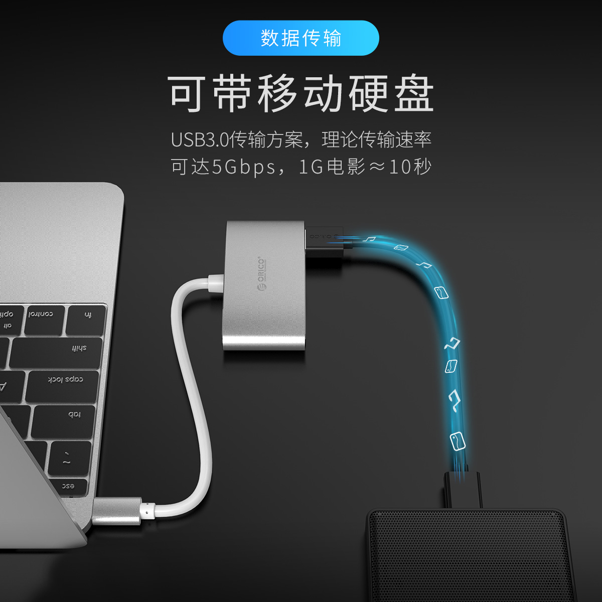 Type-C轉(zhuǎn)HDMI/USB3.0/Type-C三合一擴(kuò)展塢