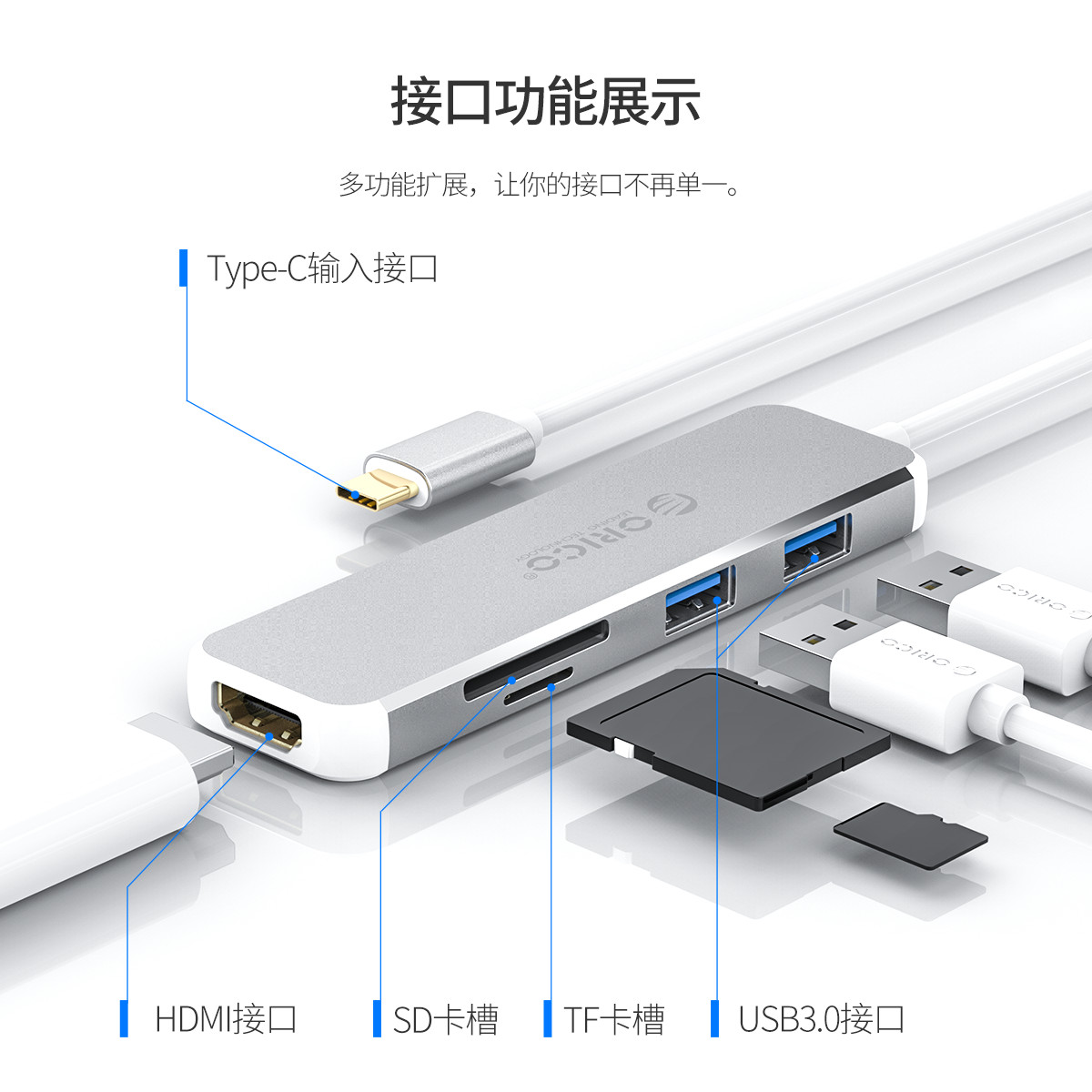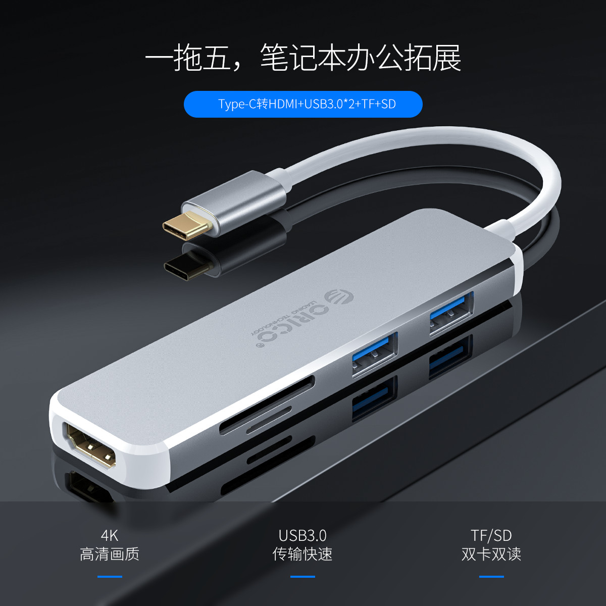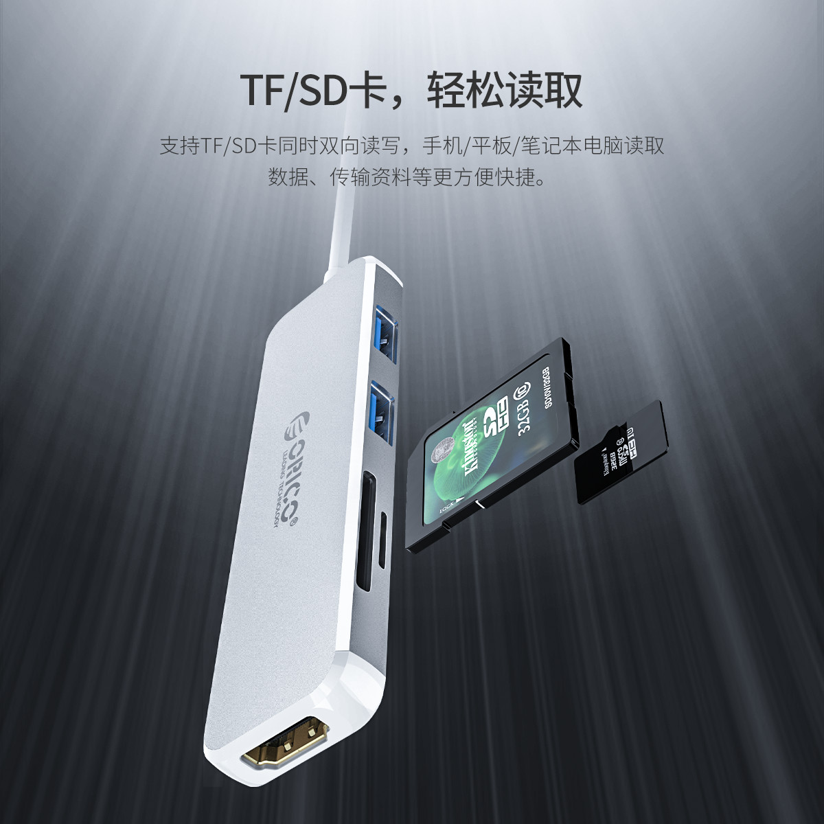 Type-C轉(zhuǎn)HDMI+USB3.0*2+TF+SD多功能擴(kuò)展塢