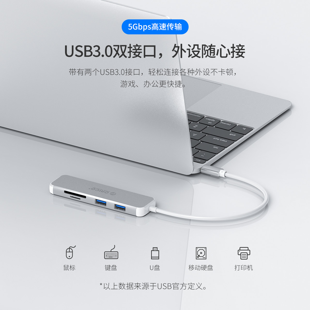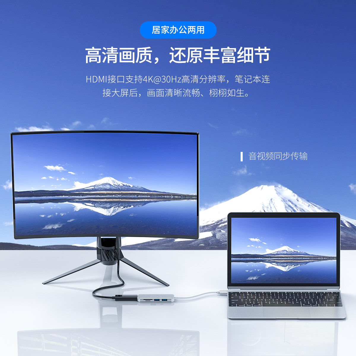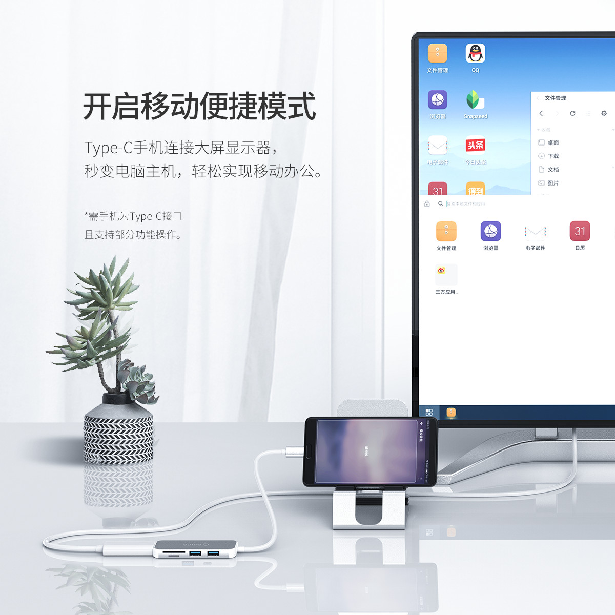 Type-C轉(zhuǎn)HDMI+USB3.0*2+TF+SD多功能擴(kuò)展塢
