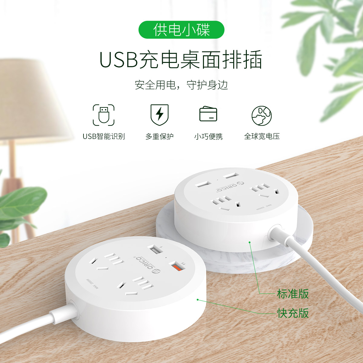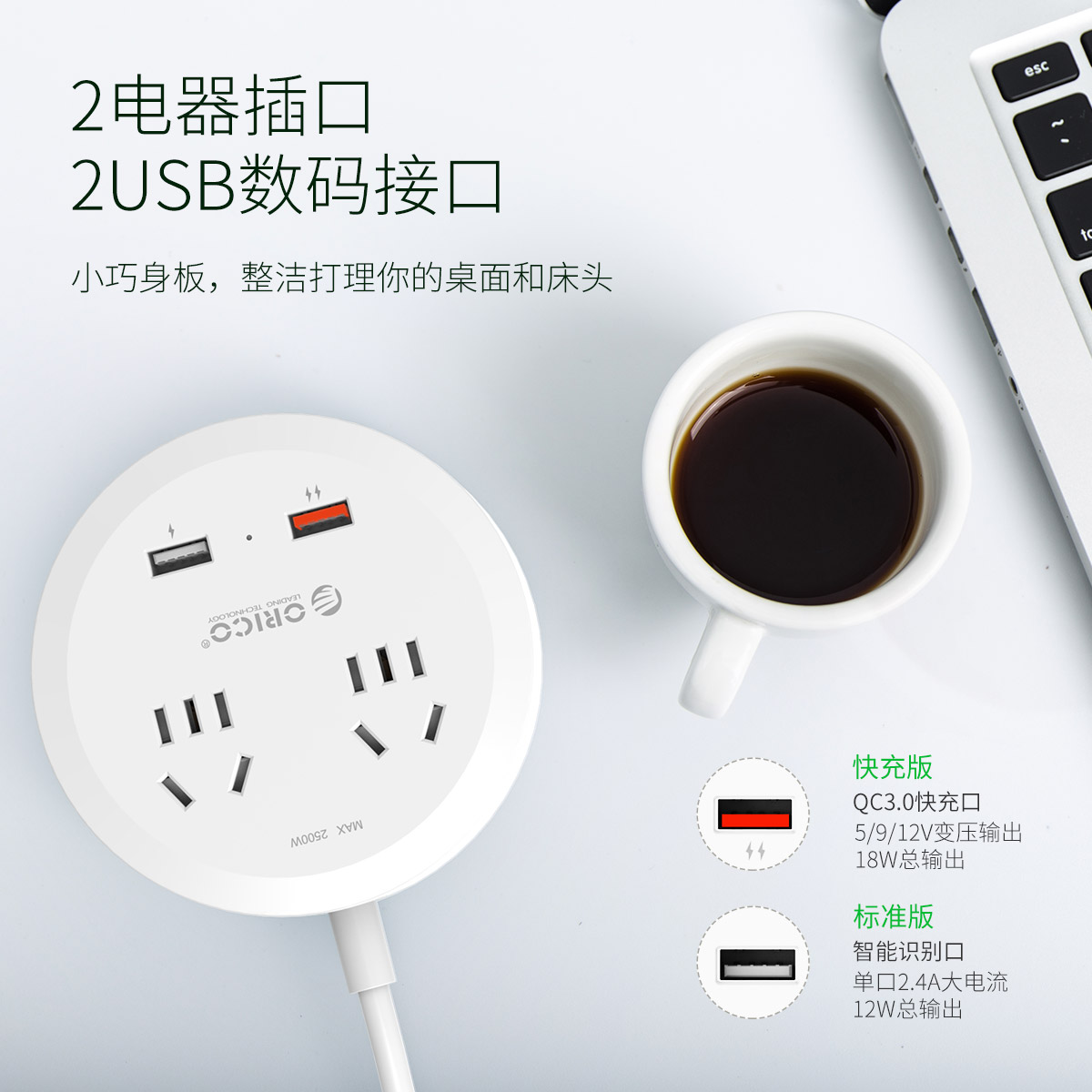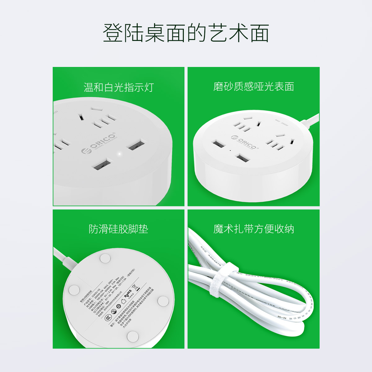 圓形款新國標2AC口2usb口充電桌面排插(快充版)