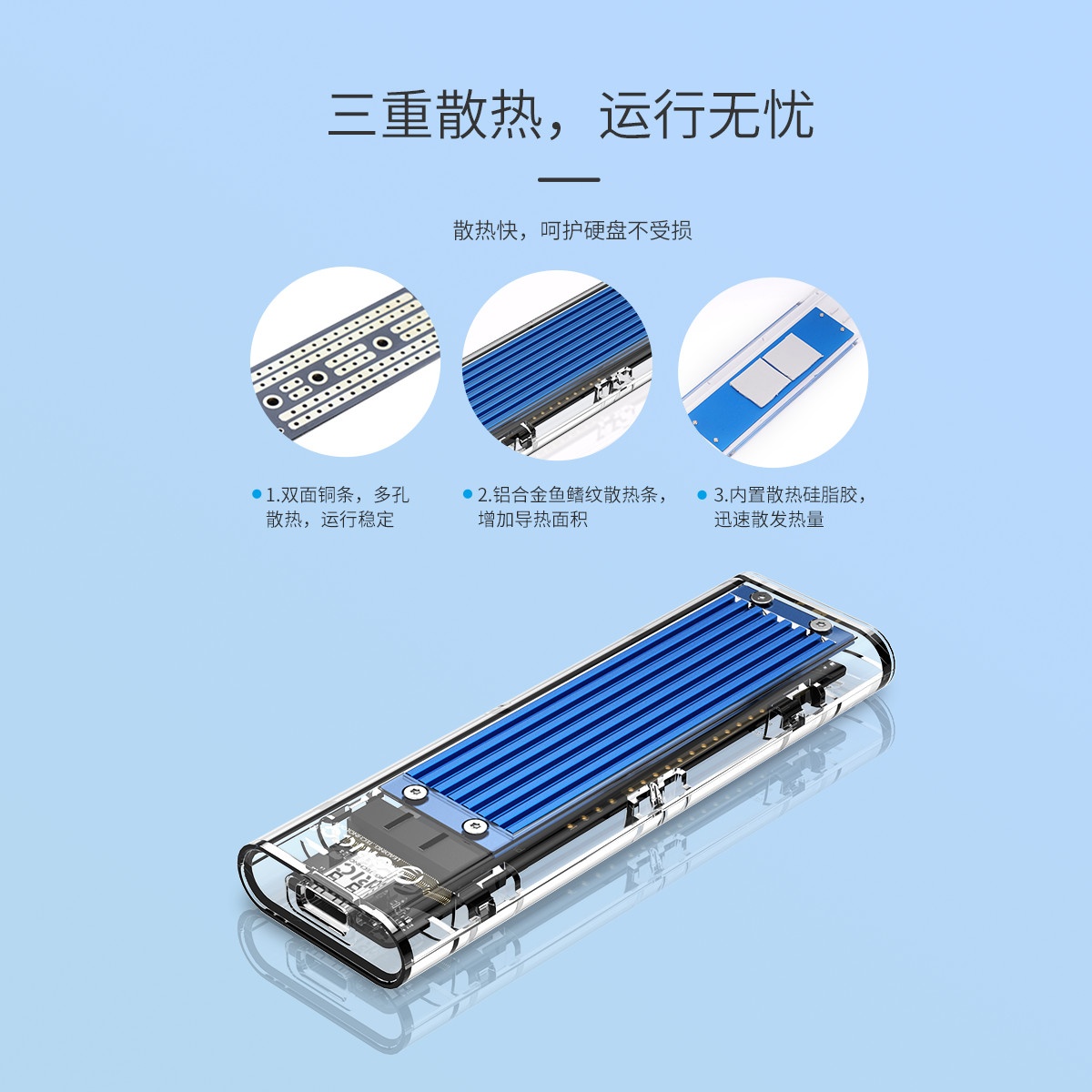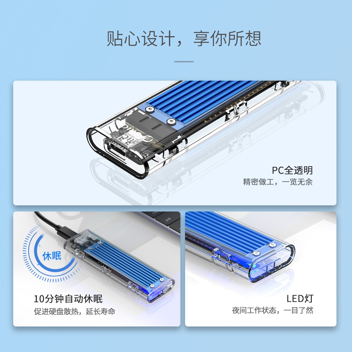 外置NVME M.2轉(zhuǎn)Type-c移動(dòng)硬盤(pán)盒 USB3.1固態(tài)SSD硬盤(pán)透明外置盒