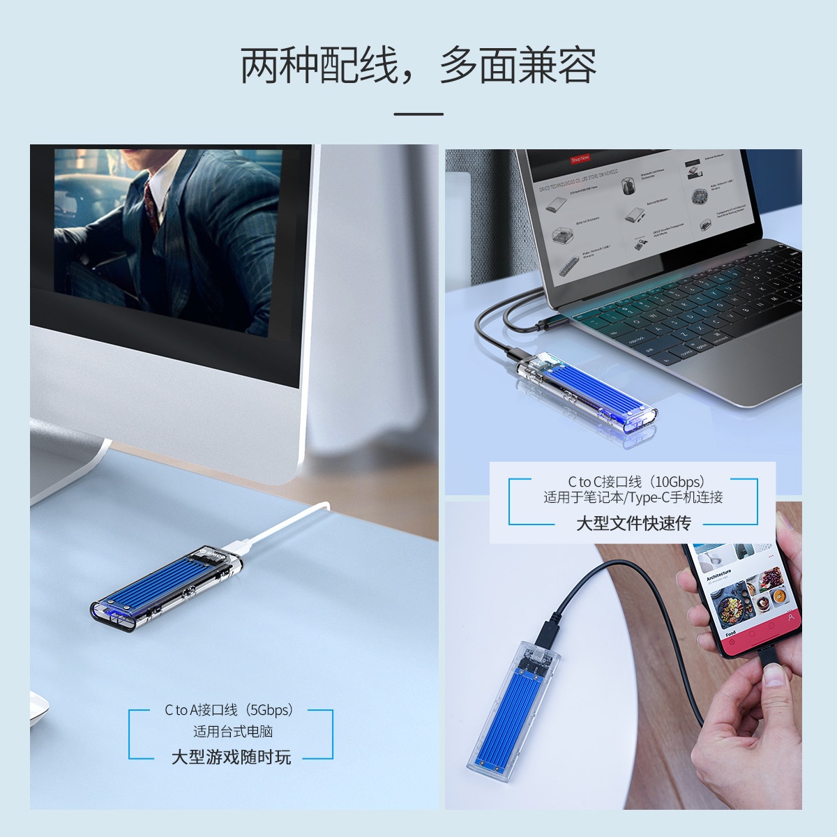 NVMEM.2轉(zhuǎn)Type-C,10Gbps高速傳輸,TRIM+UASP雙加速協(xié)議,全透明+多彩鋁合金外觀設(shè)計(jì),8TB大擴(kuò)容