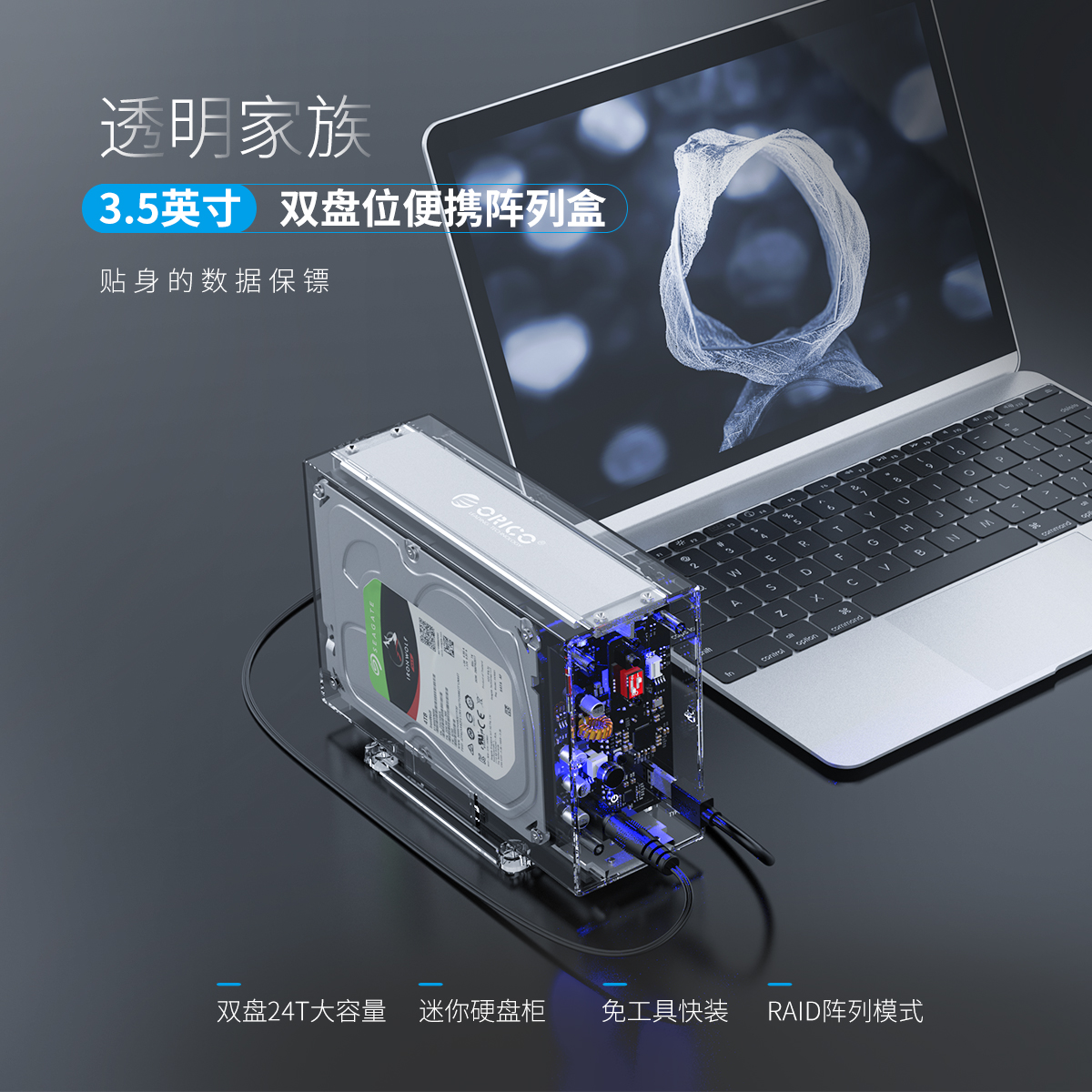 透明家族3.5英寸雙盤位便攜陣列盒