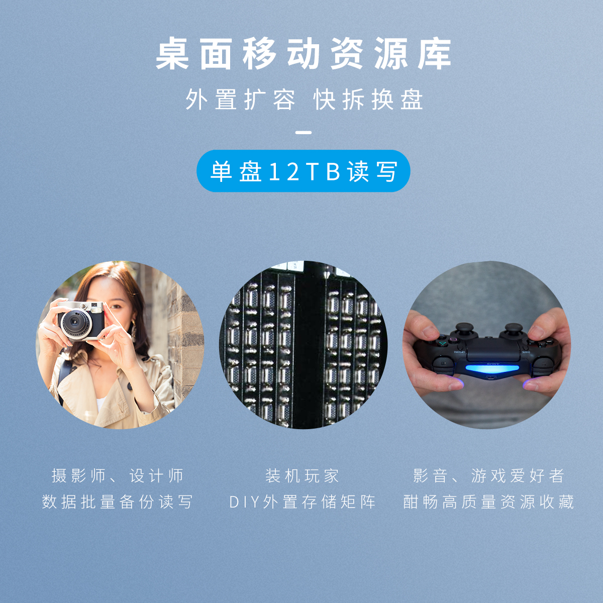 雙盤24T大容量,迷你硬盤柜,免工具快裝,RAID陣列模式